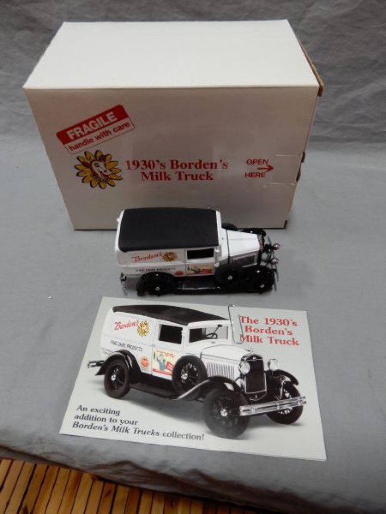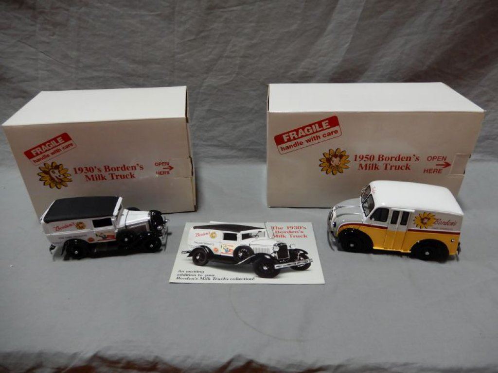 LOT OF 2 DANBURY MINT BORDEN DELIVERY TRUCKS WITH BOXES LOCATION: UPPER BACKROOM