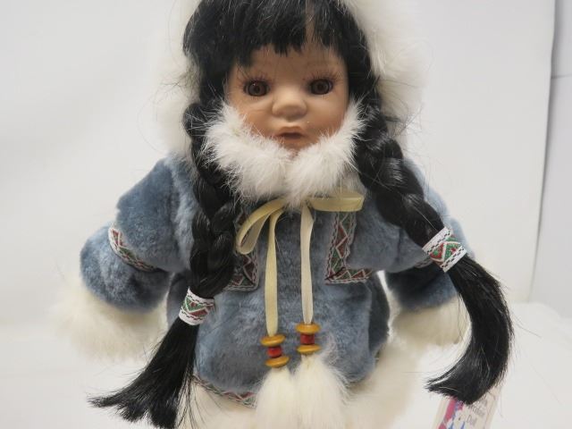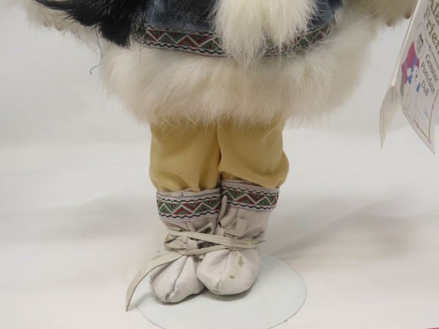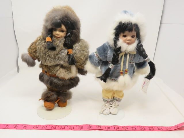 LOT OF 2 DOLLS (TRADITIONAL ABORIGINAL CLOTHES) *REAL FUR AND LEATHER* (COME WITH STANDS) *13" TALL*