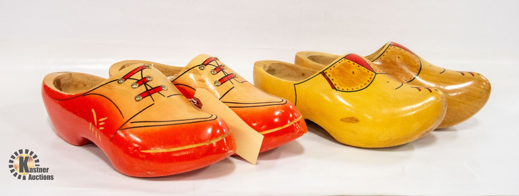 LOT OF 2 DUTCH WOODEN PAIR OF CLOGS/SHOES