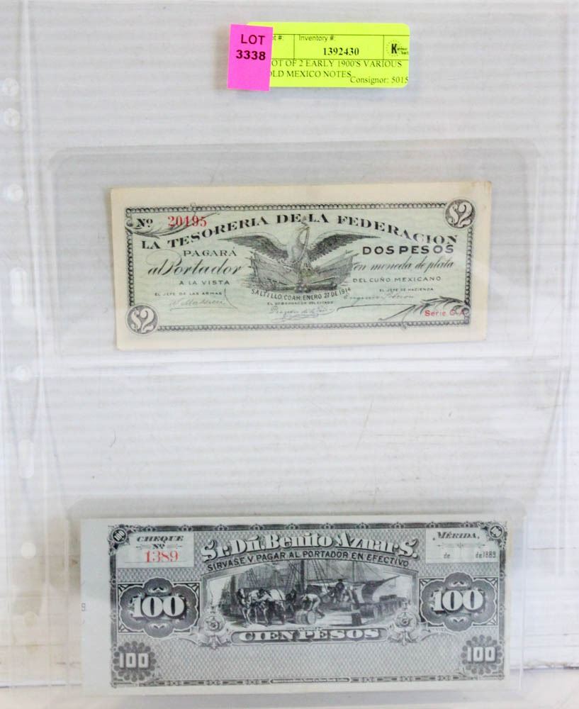LOT OF 2 EARLY 1900'S VARIOUS OLD MEXICO NOTES