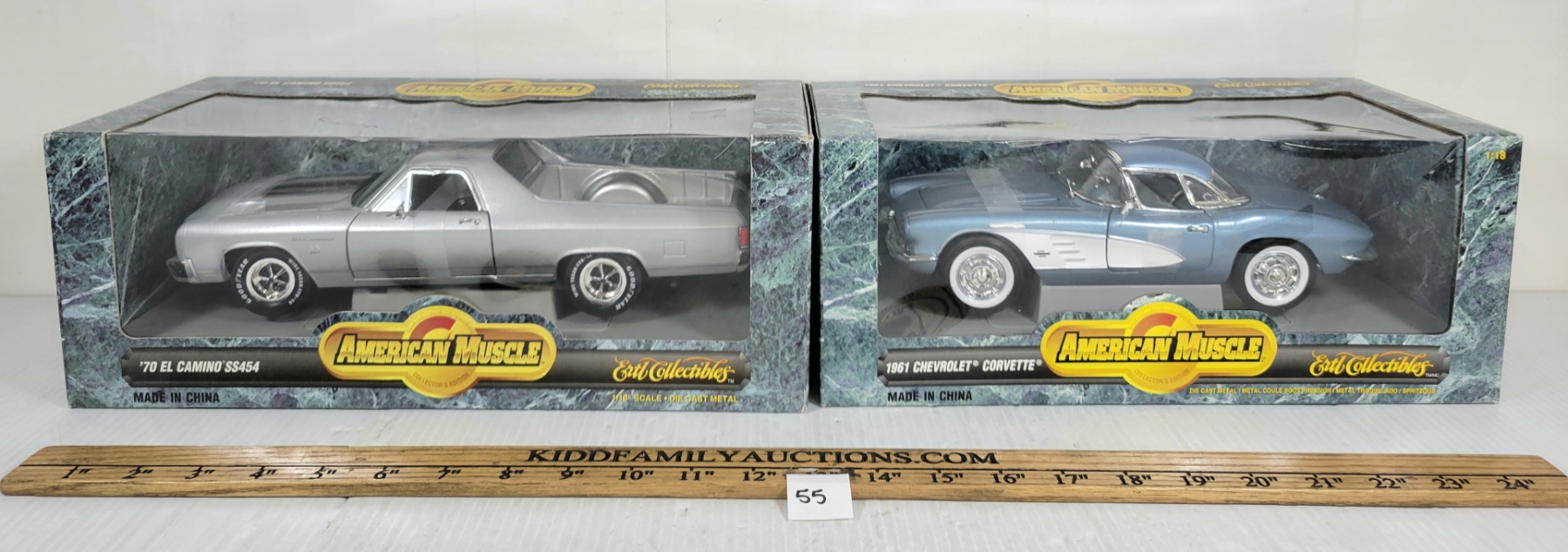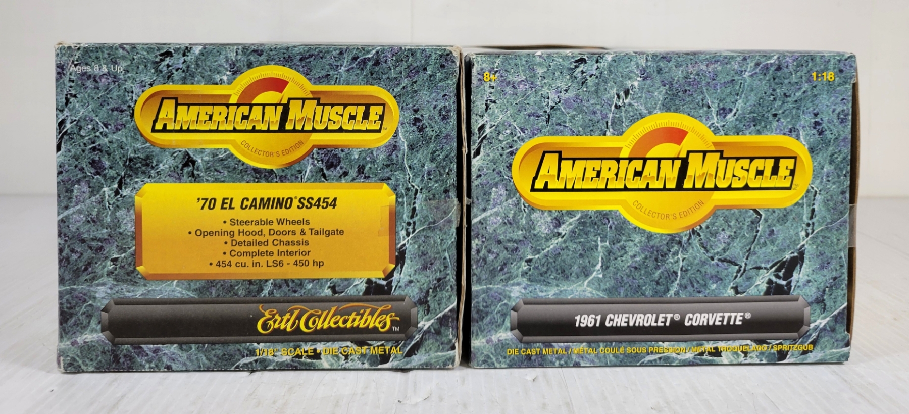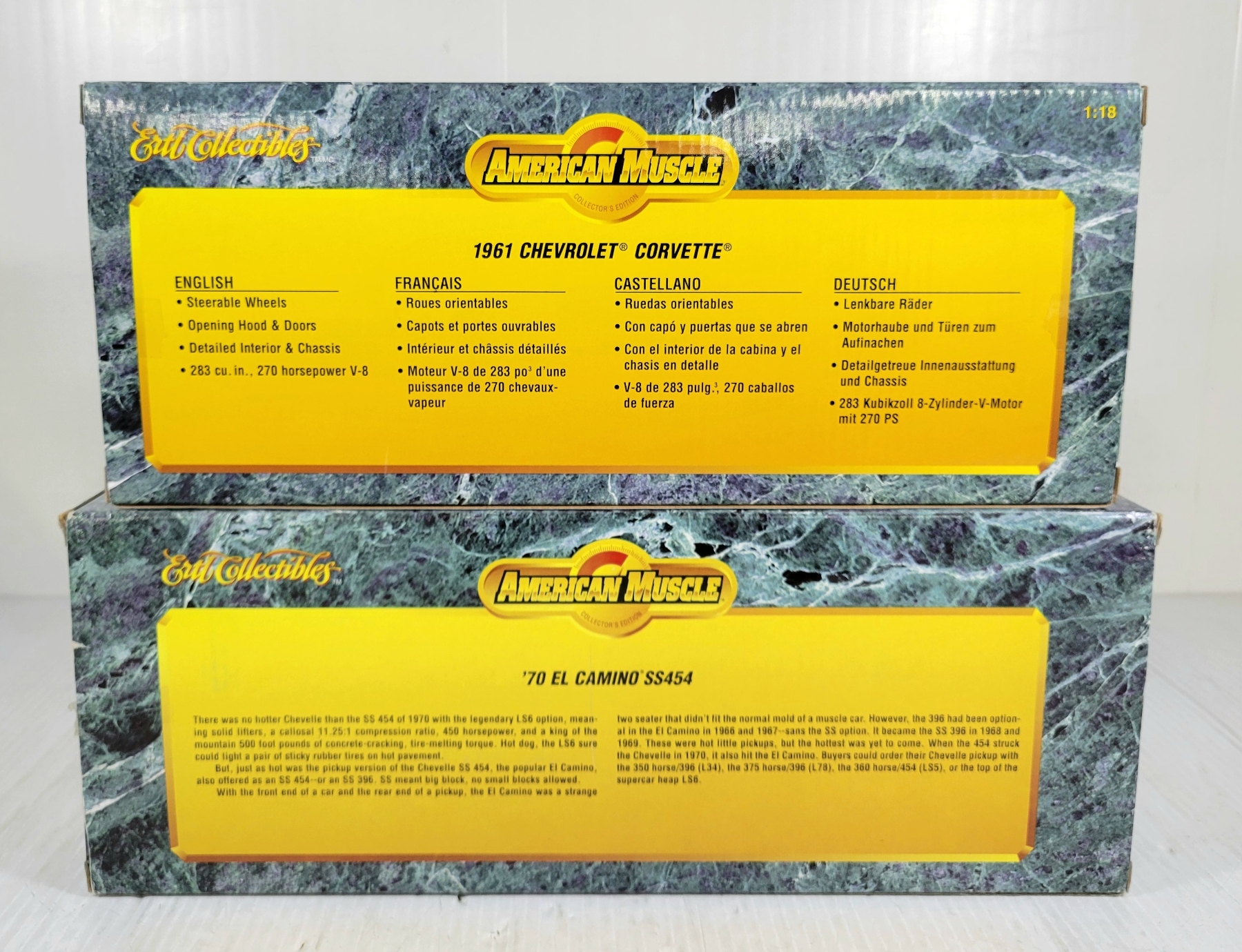 LOT OF 2 - ERTL AMERICAN MUSCLE DIECAST '61 CHEVROLET CORVETTE & '70 EL CAMINO SS454 MODELS