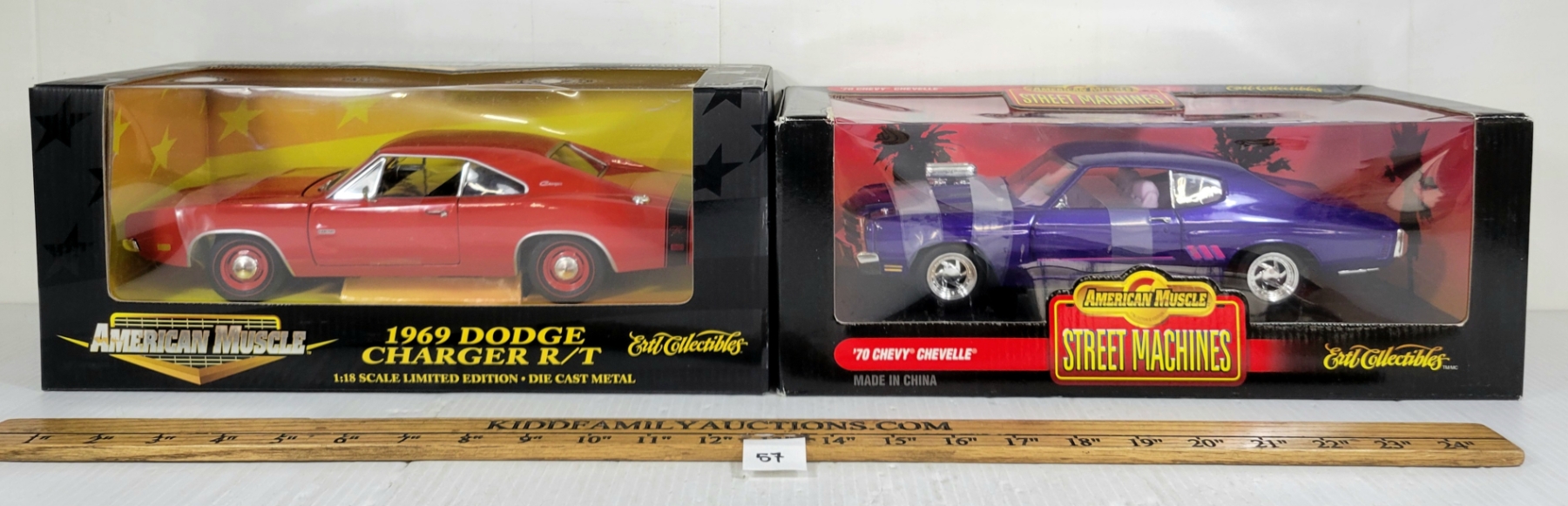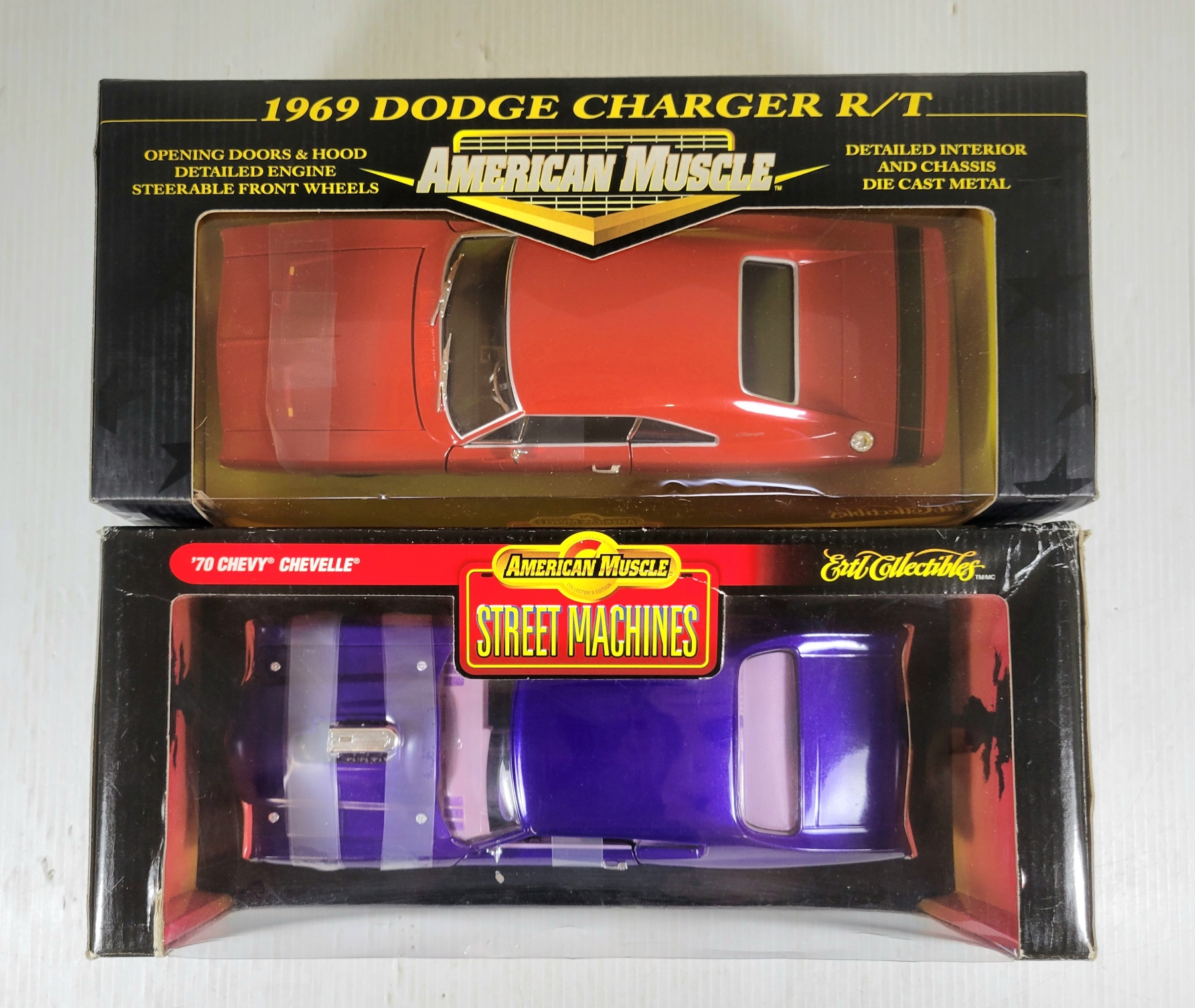LOT OF 2 - ERTL AMERICAN MUSCLE DIECAST '69 DODGE CHARGER R/T & '70 CHEVY CHEVELLE MODELS