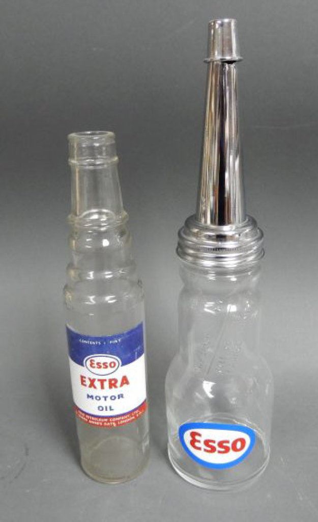 LOT OF 2 ESSO OIL BOTTLES ESSO EXTRA MOTOR OIL IMP PINT - U.S. QT BOTTLE WITH ESSO STICKER WITH SPOUT & CAP LOCATION: LOWER LEFT