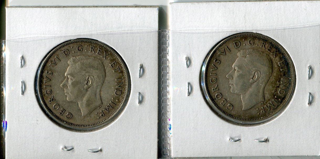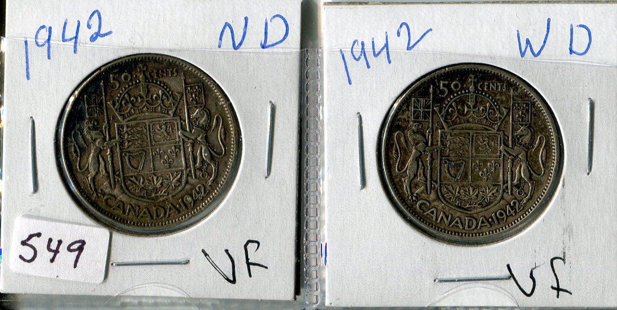 LOT OF 2 FIFTY CENT COINS (CANADA) *1942* (WIDE DATE & NARROW DATE)