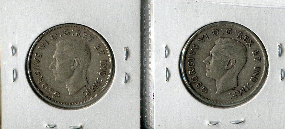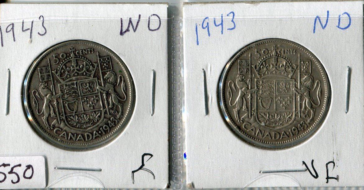LOT OF 2 FIFTY CENT COINS (CANADA) *1943* (WIDE DATE & NARROW DATE)