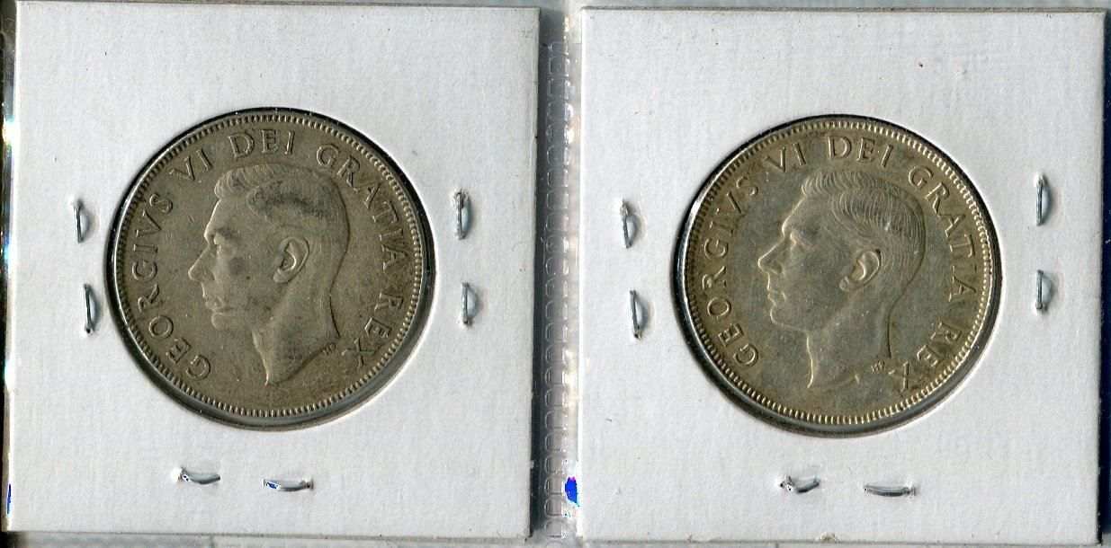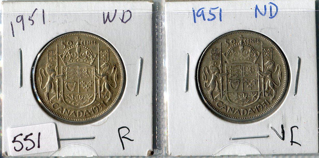 LOT OF 2 FIFTY CENT COINS (CANADA) *1951* (WIDE DATE & NARROW DATE)