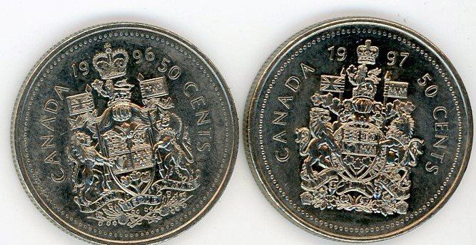 LOT OF 2-FIFTY CENT COINS (CANADA) *1996-97*