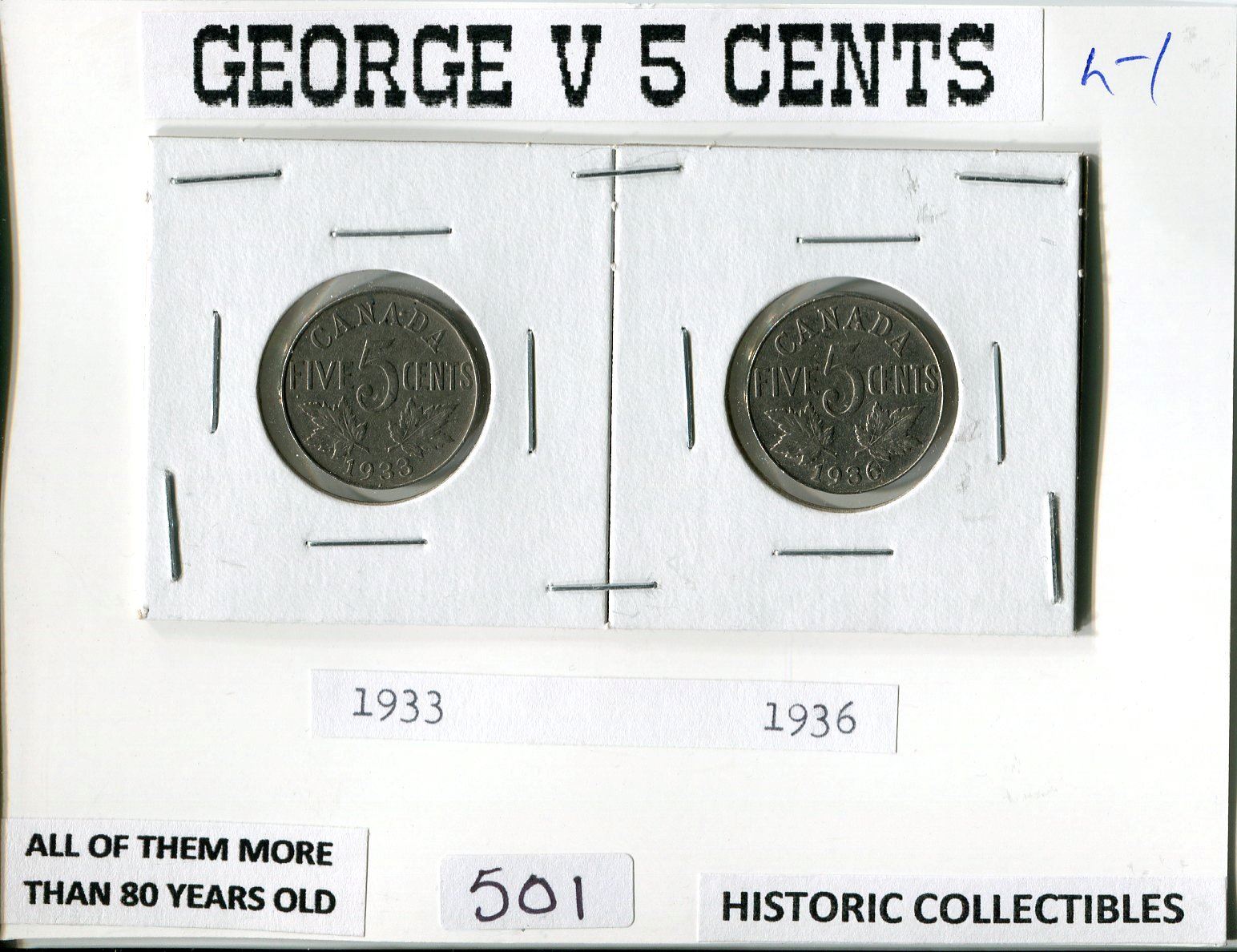 LOT OF 2 FIVE CENT COINS ( 1933, 1936) *GEORGE V*
