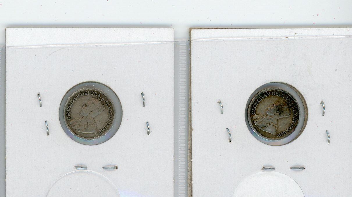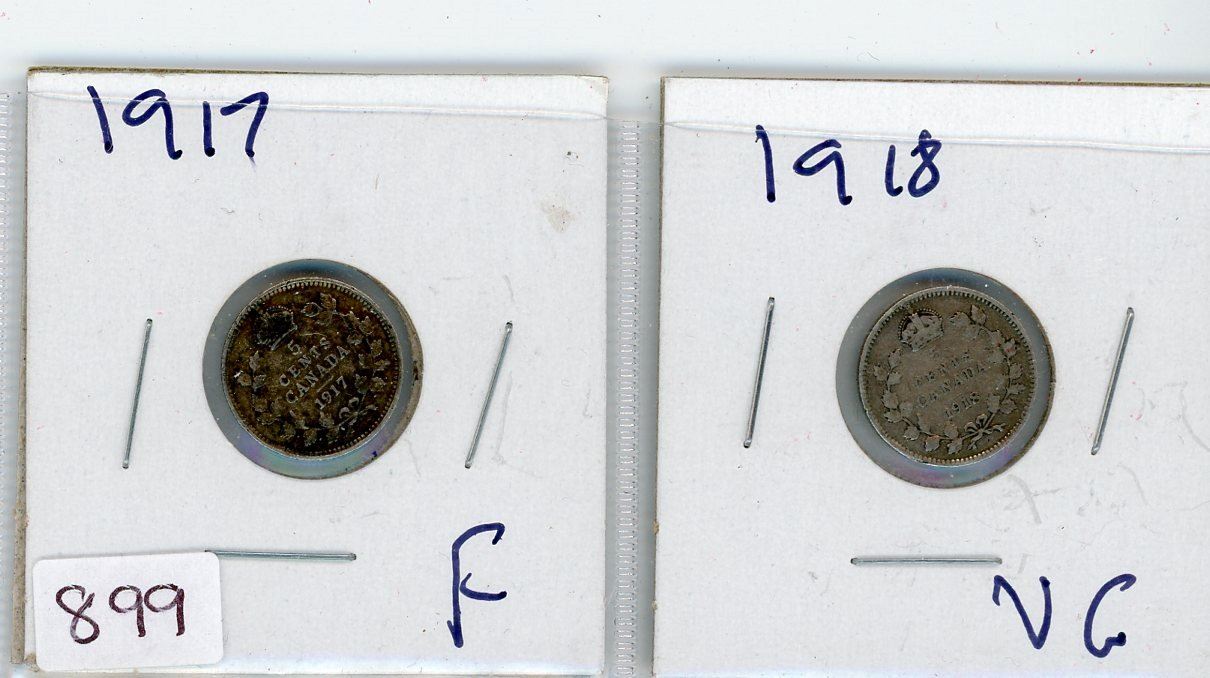 LOT OF 2-FIVE CENT COINS (CANDIAN) *1917 & 1918* (SILVER)
