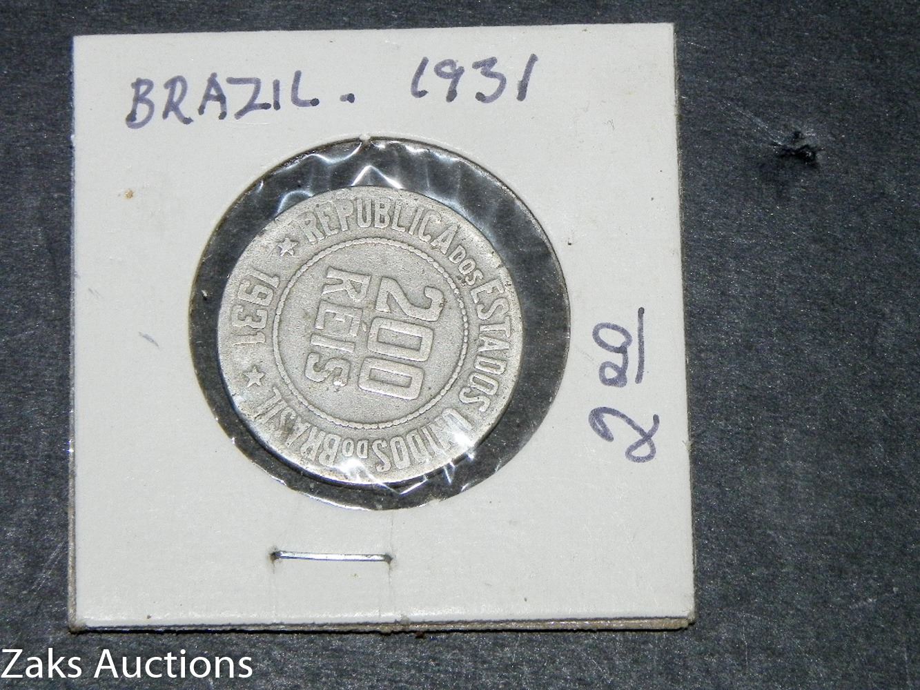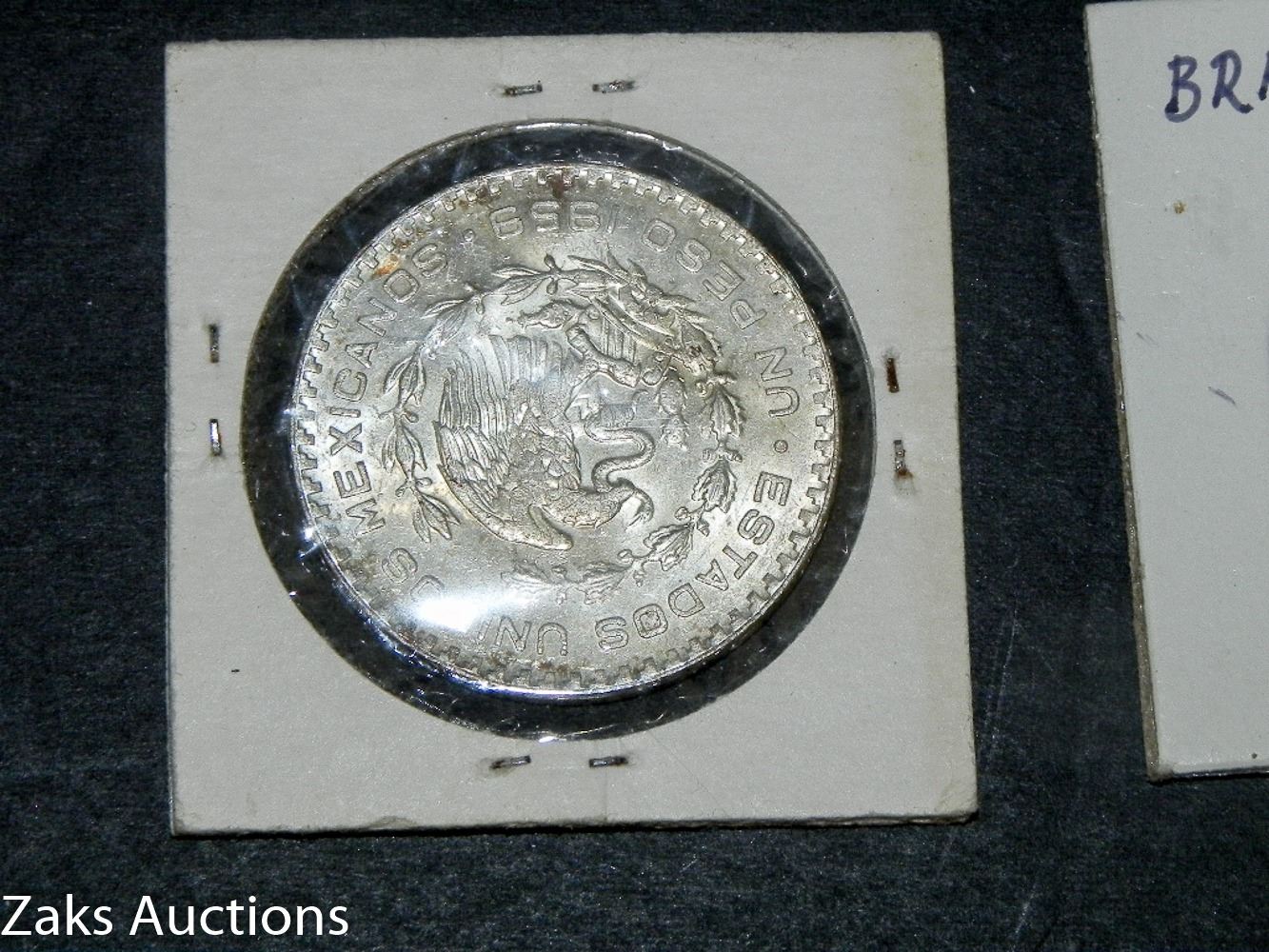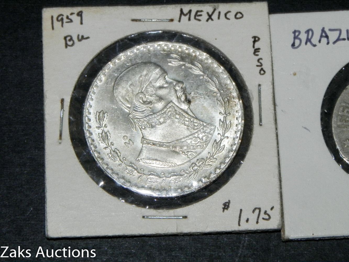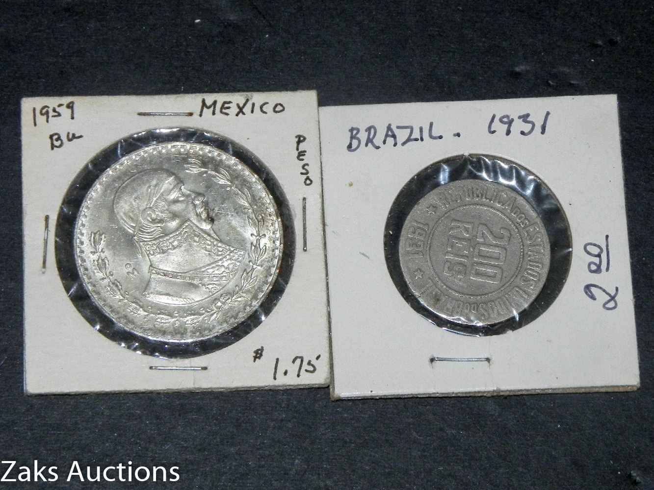 LOT OF 2 FOREIGN COINS. 1959 MEXICO PESO AND 1931 BRAZIL