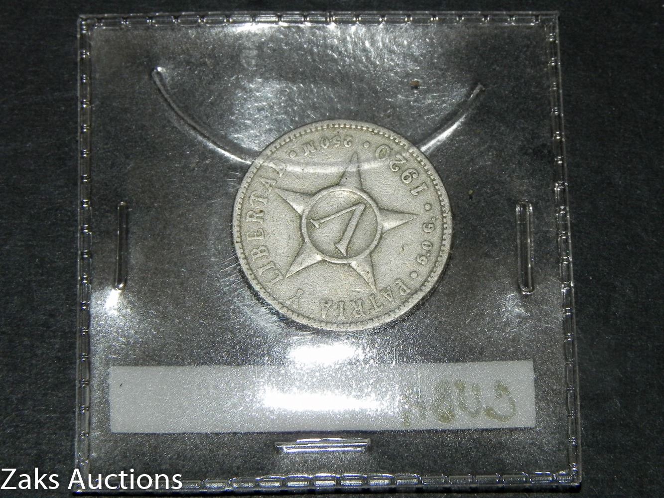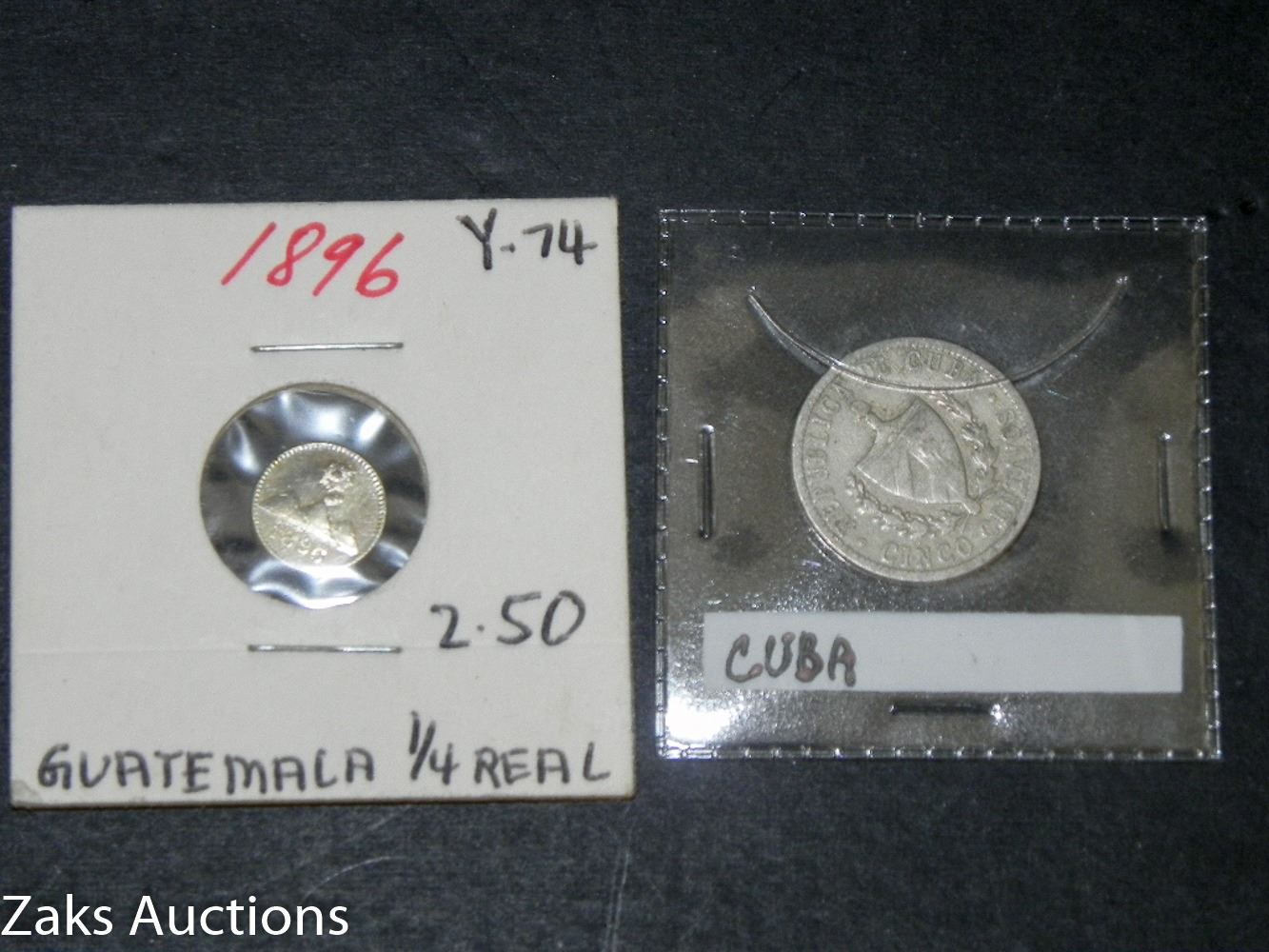 LOT OF 2 FOREIGN COINS. 1896 GUATEMALA 1/4 REAL AND CUBA 1920 5 CENTAVOS