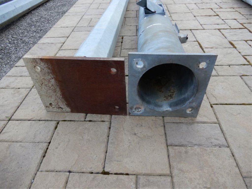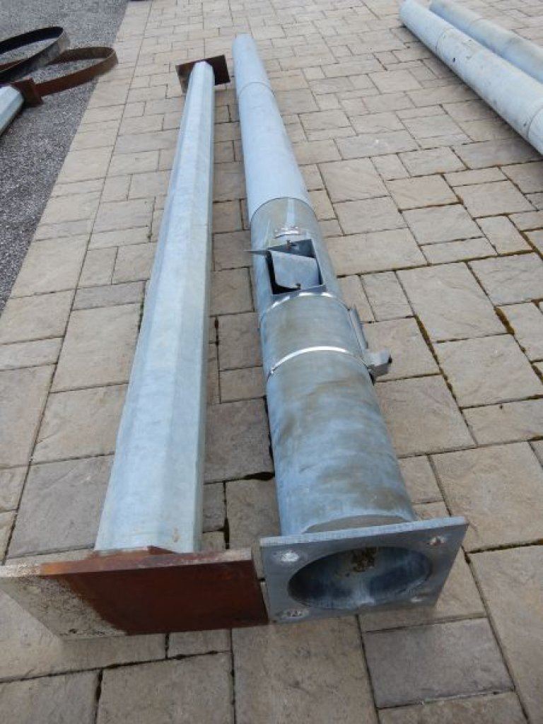 LOT OF 2 GALVANIZED UTILITY POLES 17" X 17" X 185" POLE FAB INC. WOODBRIDGE, ONT - WITH CROSS WALK
