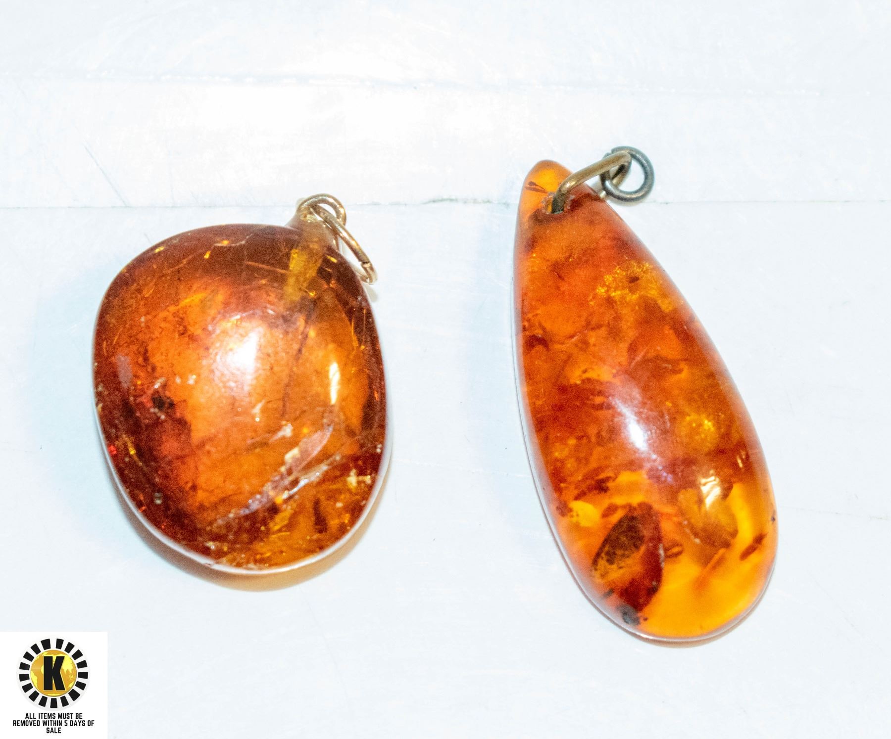 LOT OF 2 GENUINE AMBER GEMSTONE PENDANTS