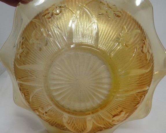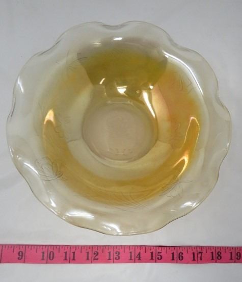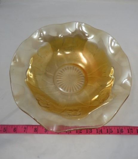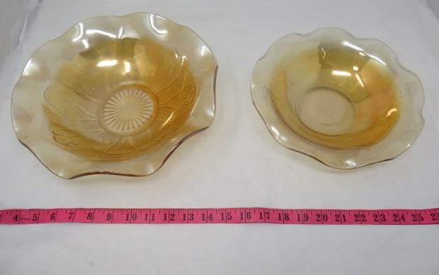 LOT OF 2 GLASS BOWLS (DEPRESSION ERA) *IRIS HERRING BONE 11.5" DIAMETER X 3" DEEP* (MARIGOLD 9.5" DIAMETER X 2.5" DEEP)