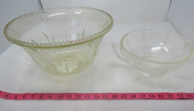 LOT OF 2 GLASS BOWLS (PUNCH BOWL AND SERVING BOWL)