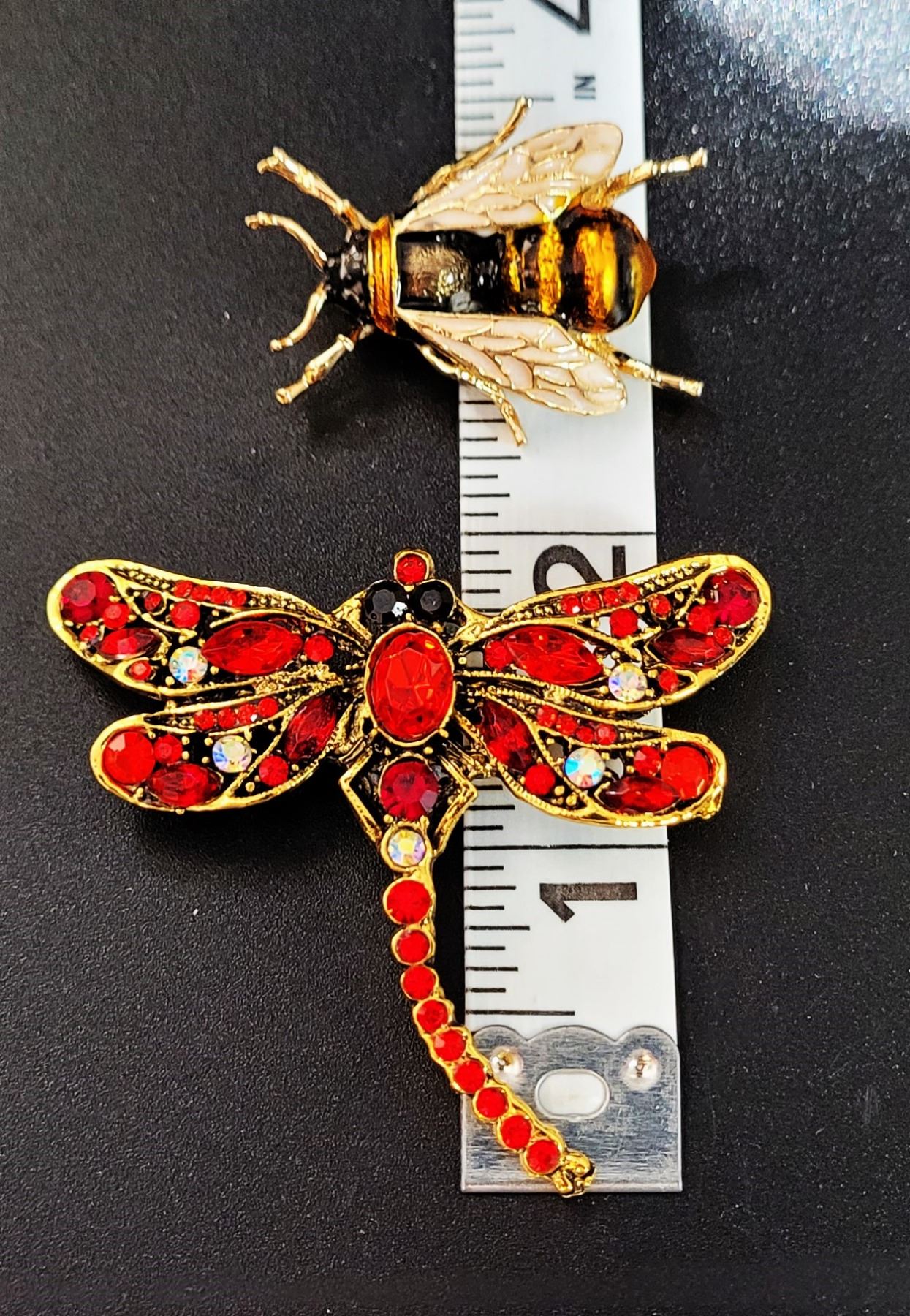 CRYSTAL DRAGONFLY & GOLD TONE & ENAMEL BUMBLE BEE. JEWELLERY