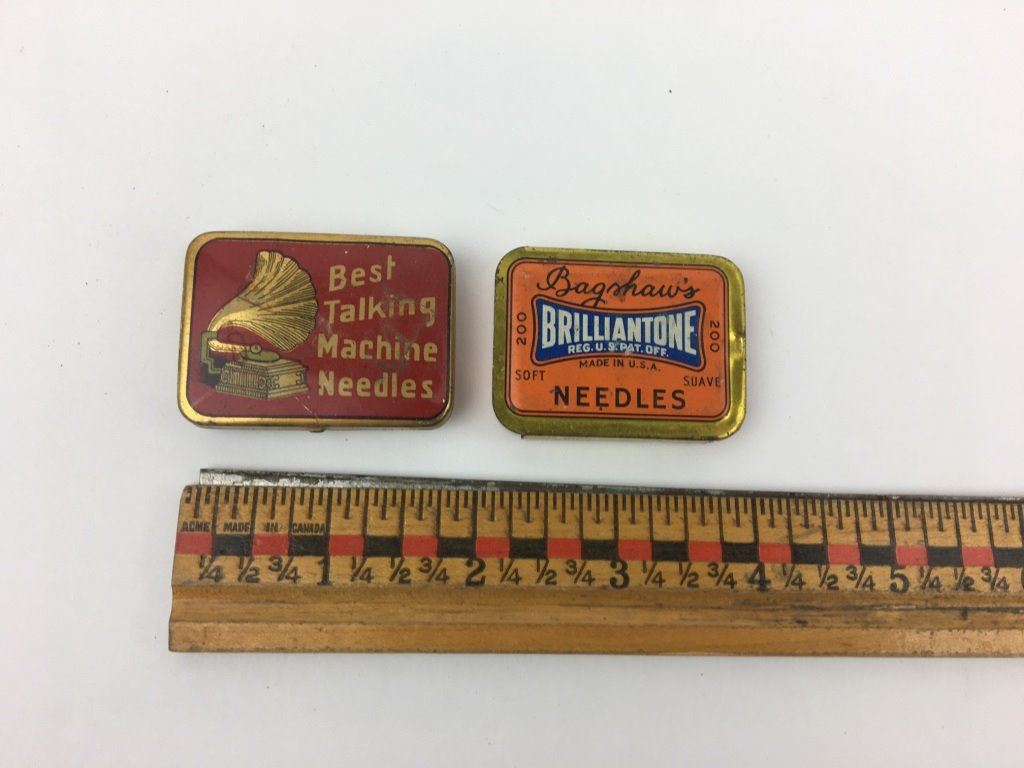 LOT OF 2 GRAMOPHONE NEEDLE TINS, W/NEEDLES