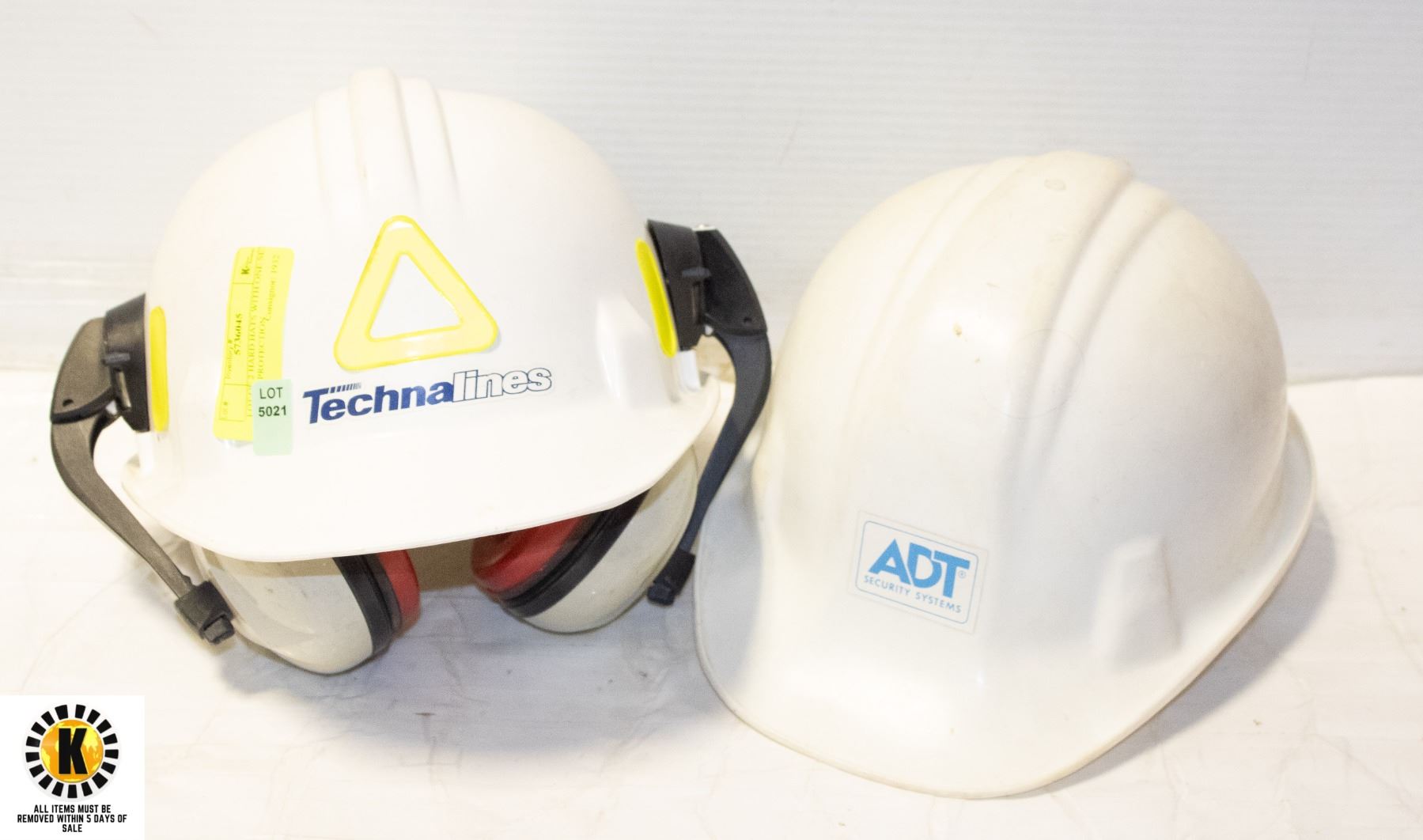 LOT OF 2 HARD HATS WITH ONE SET OF EAR PROTECTION