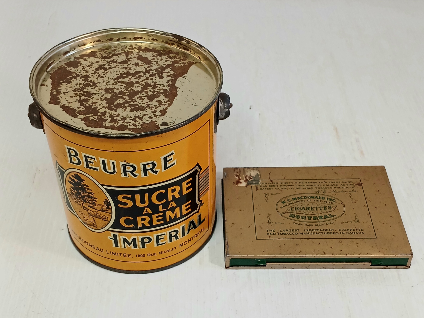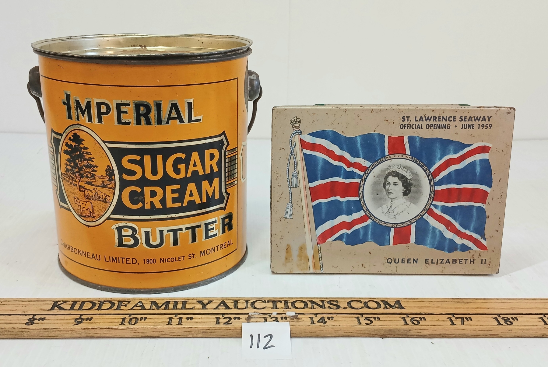 LOT OF 2 - IMPERIAL SUGAR CREAM BUTTER 4.5LB CAN & EXPORT A QUEEN ELIZABETH II TIN