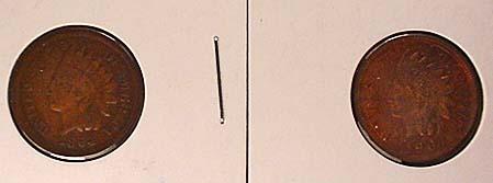 LOT OF 2 INDIAN CENTS - 1904 and 1864