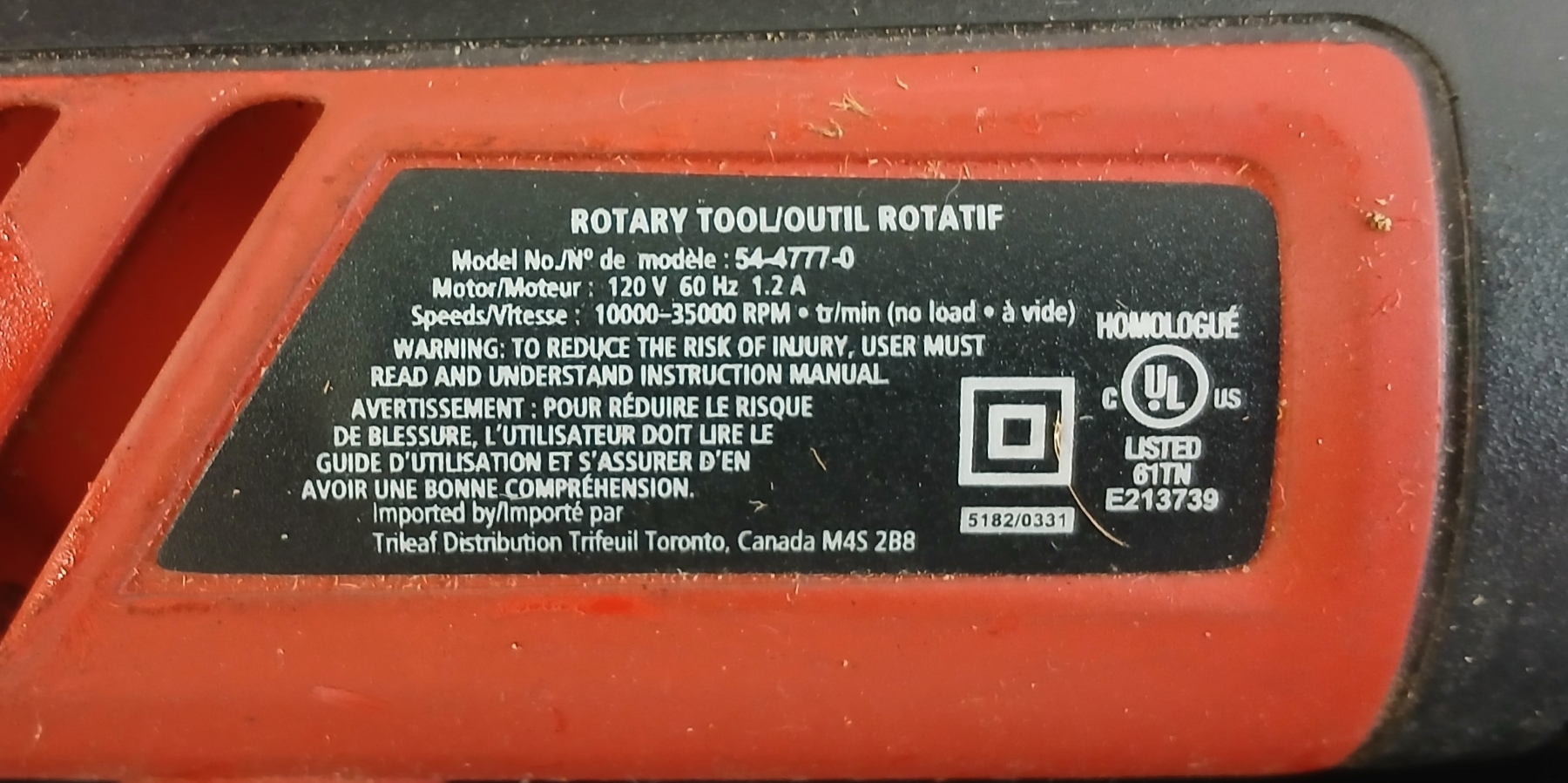 NOTE: ROTARY TOOL WORKING WHEN TESTED