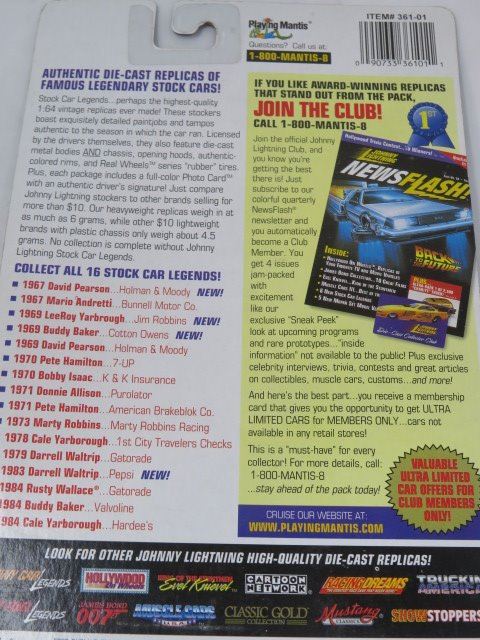 LOT OF 2 JOHNNY LIGHTNING CARS ( STOCK CAR LEGENDS BUDDY BAKER AND DARRELL WALTRIP)