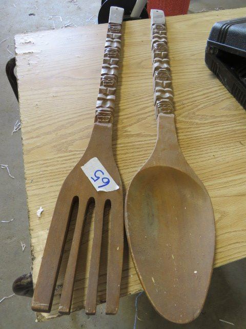 LOT OF 2 LARGE SPOON AND FORK DECORATIVE ITEMS (35.5" X 5.5")