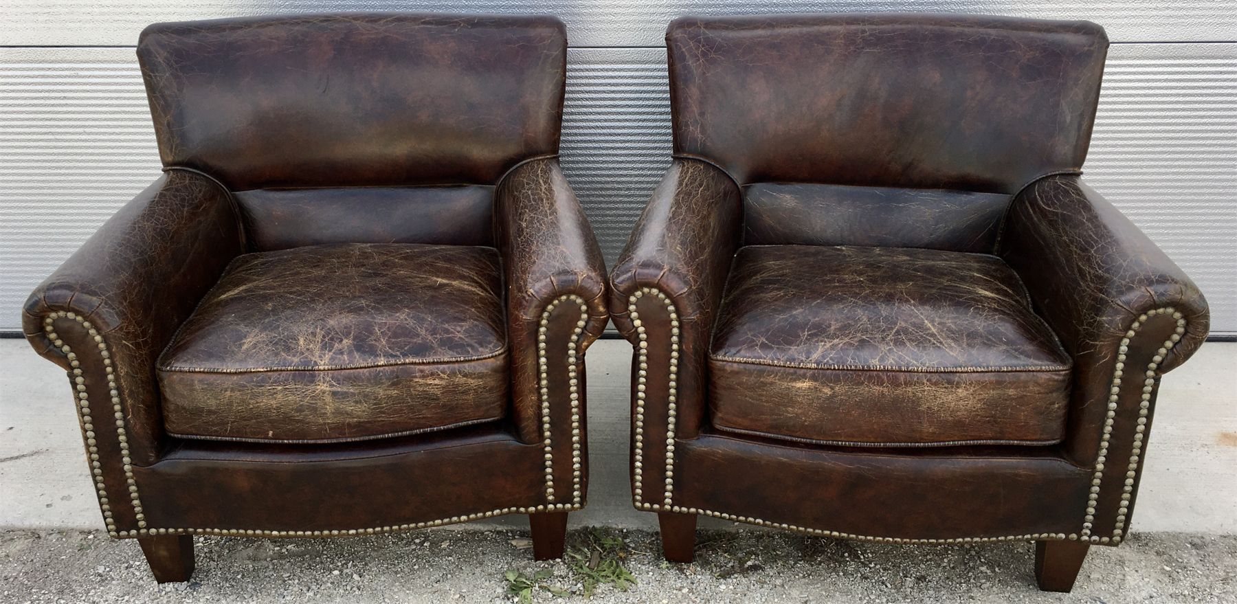 NOTE: LEATHER ISN'T DAMAGED, HAS DESTRESSED DESIGN. *WINNING BIDDER MUST ARRANGE SHIPPING*