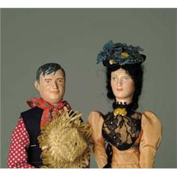 Lot 434: LOT OF 2 LEWIS SORENSEN DOLLS. 1) 12" Gibson Girl and 2) 11 ½" Will Rogers. CONDITION: All original and in excellent condition. 1-937 CL130