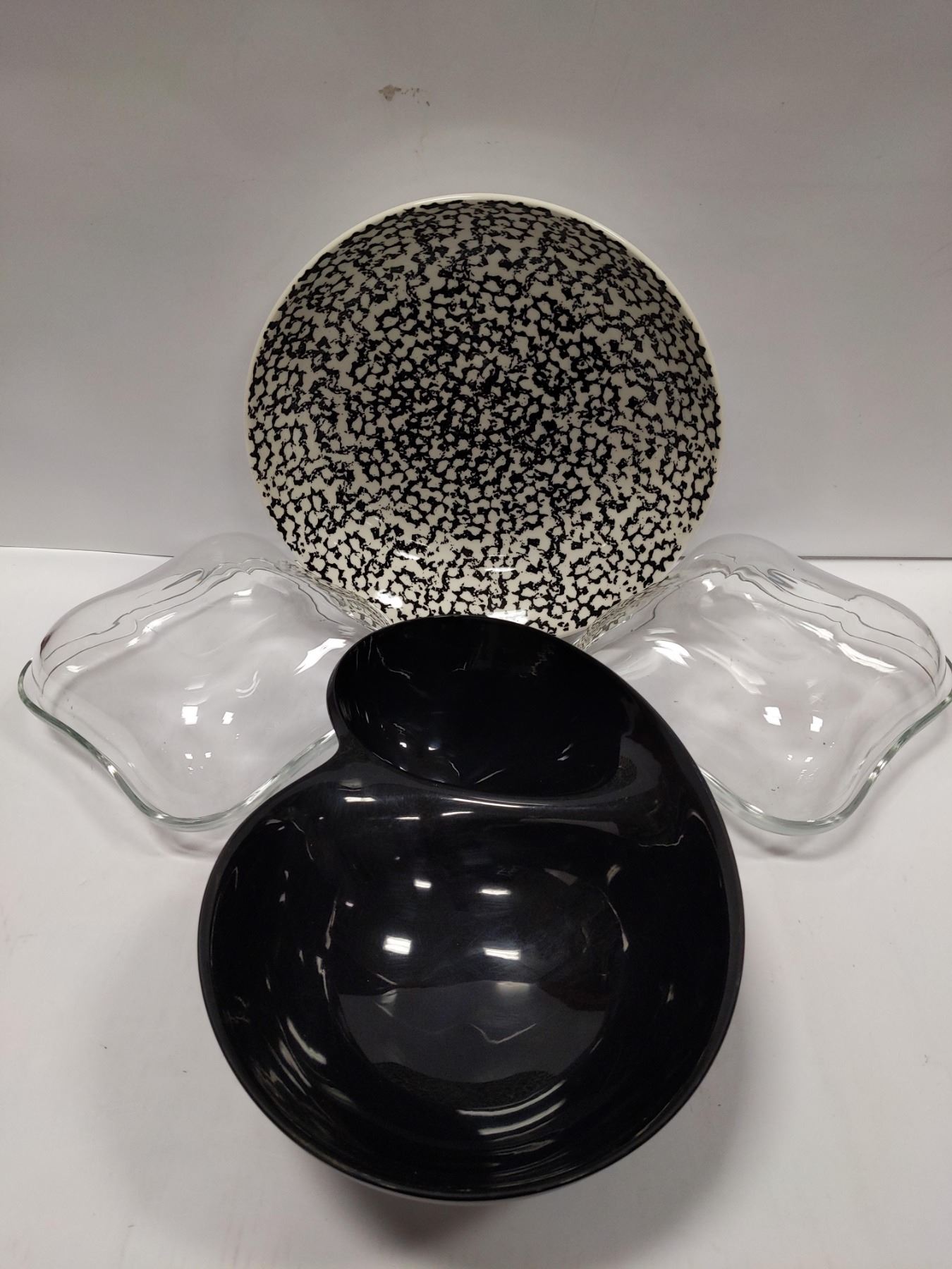 LOT OF 2 LIDD GLASS DISHES WITH LARGE ORNATE BOWL