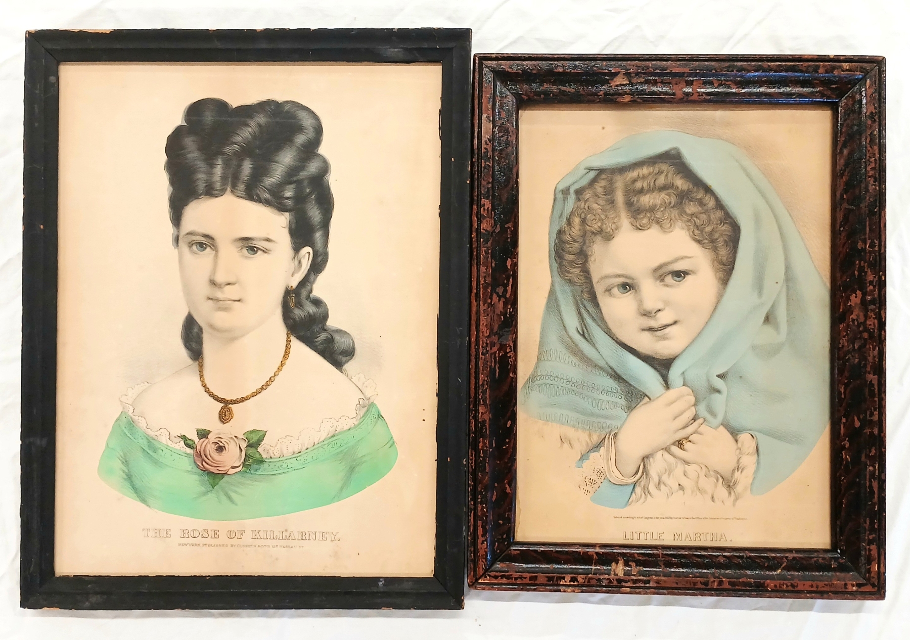 NOTE: LARGEST IS 13.5 X 18IN W/ FRAME - FRAMED HAND-COLOURED LITHOGRAPHS - ORIGINAL PRINTS FROM FLAGSHIP CURRIER & IVES PUBLISHING COMPANY IN NEW YORK, U.S.A - CIRCA LATE 1880s' - SIGNS OF WEAR TO FRAMES - SEE ALL PHOTOS