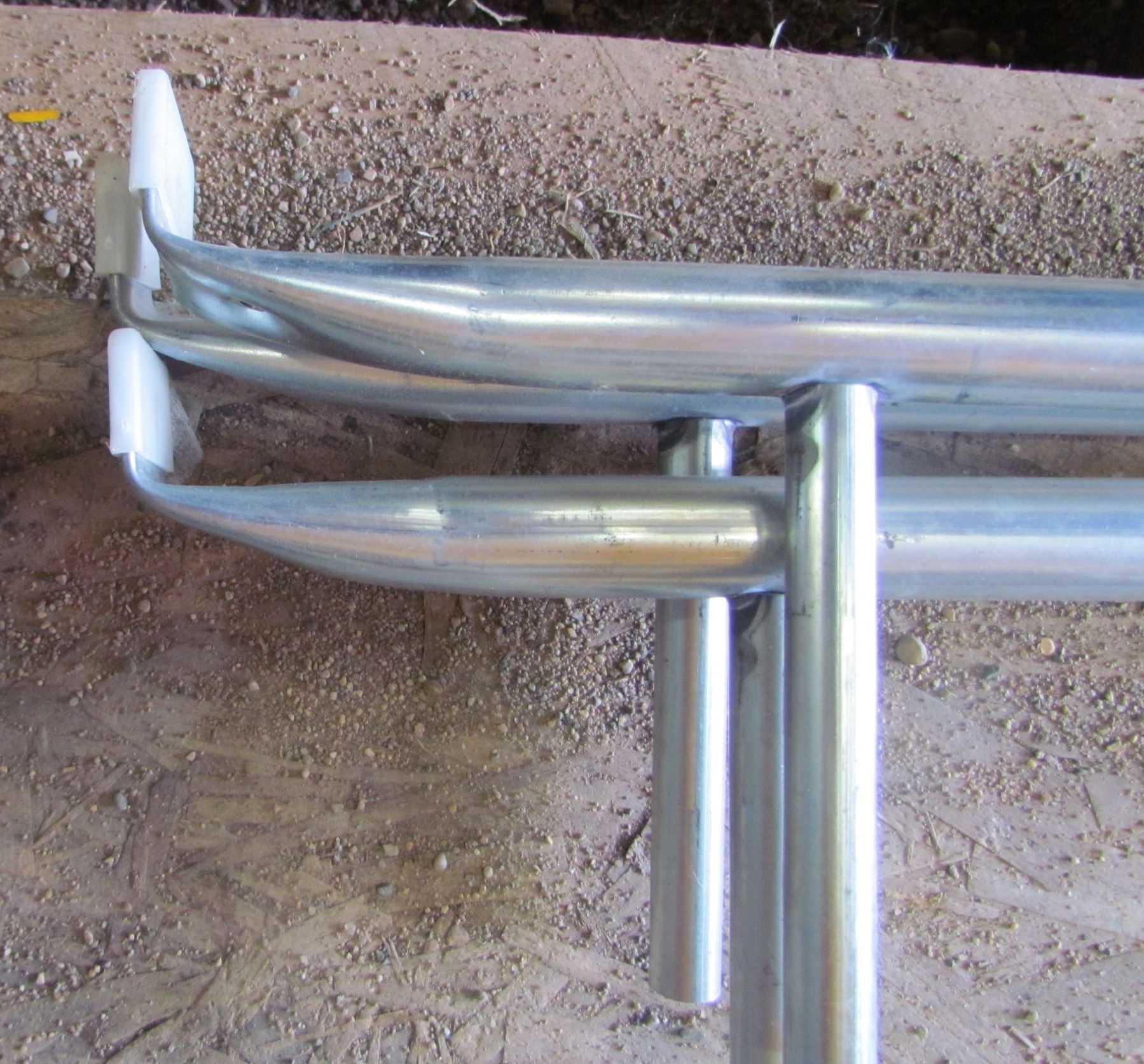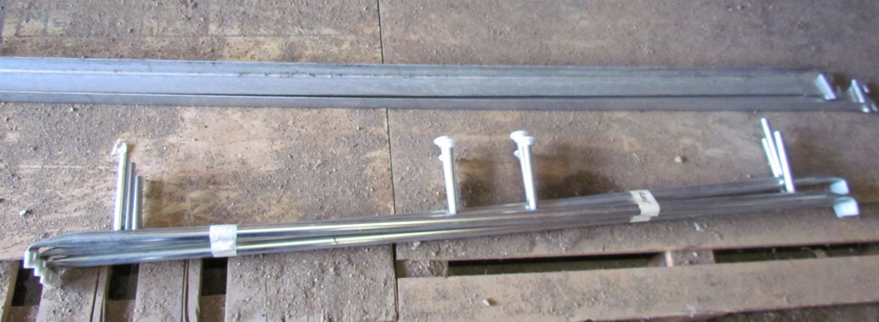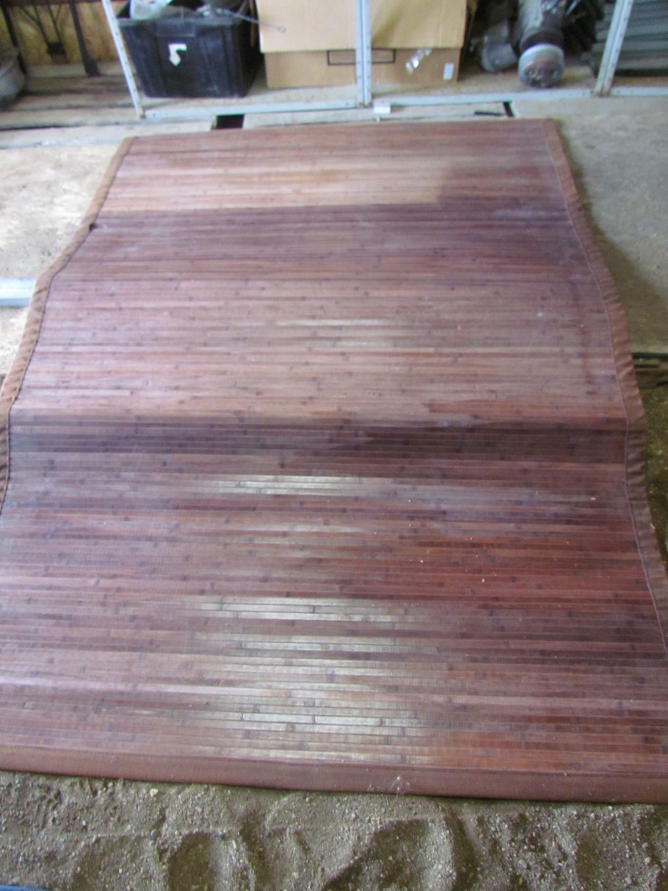 LOT OF 2 METAL BED RAILS AND BAMBOO RUG (7.5' L X 63"W) *BED RAILS 79"L* (RAILS WITH PLASTIC ENDS 5' L)