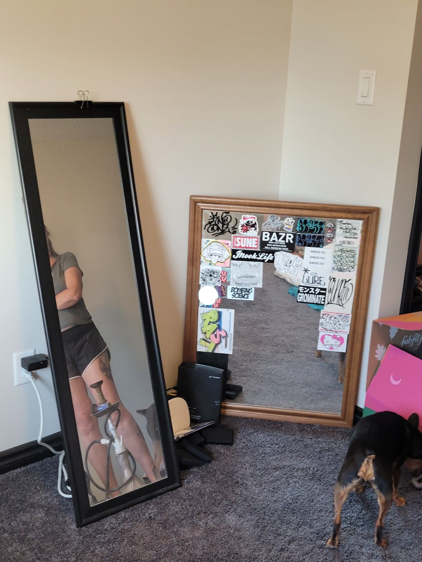 LOT OF 2 MIRRORS. MUST TAKE BOTH. FULL LENGTH MIRROR MEASURES 51.5'X 15.5", DRESSER MIRROS (COMES WITH SUPPORTS) MEASURES 27" X 35"
