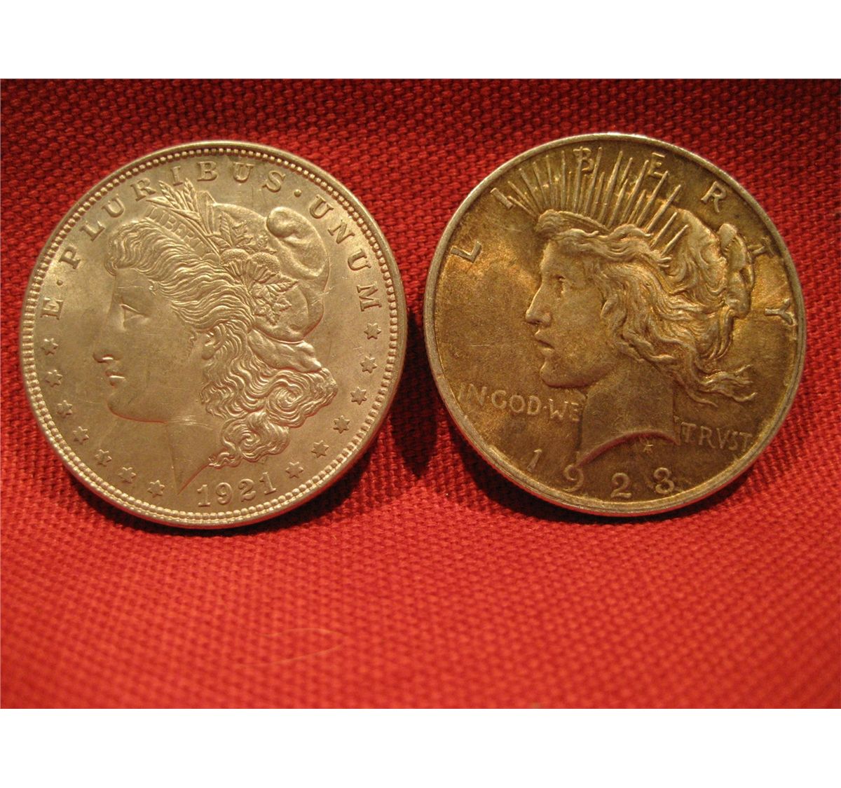 DATE: (1) 1921 MORGAN, (1) 1923 PEACE MORGAN & PEACE SILVER DOLLAR 90% SILVER