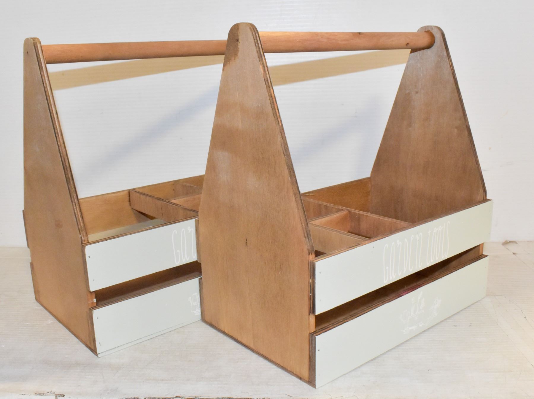 LOT OF 2 NEW WOODEN GARDEN TOOL BOXES