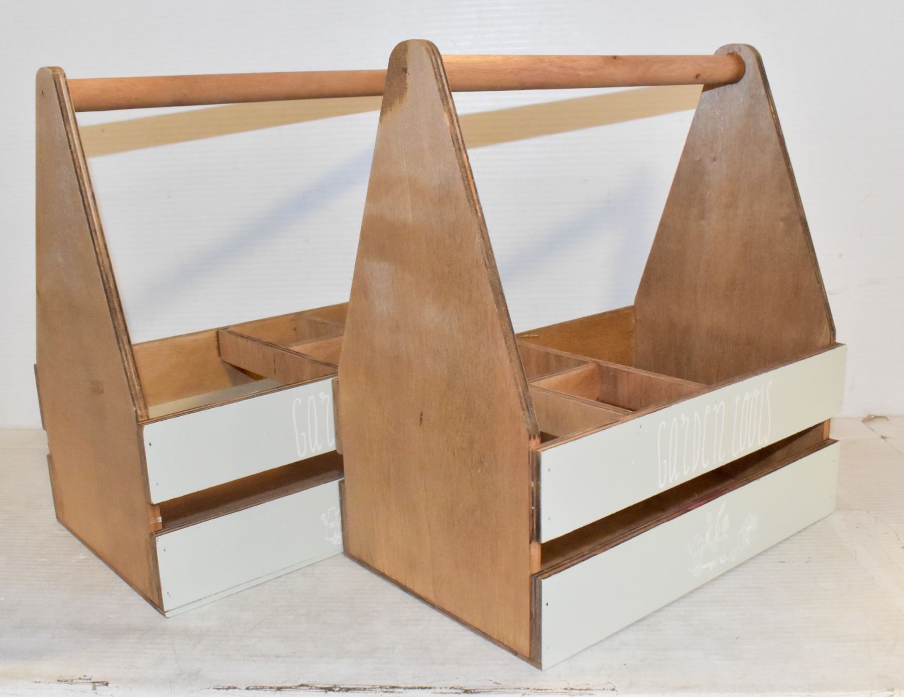 LOT OF 2 NEW WOODEN GARDEN TOOL BOXES
