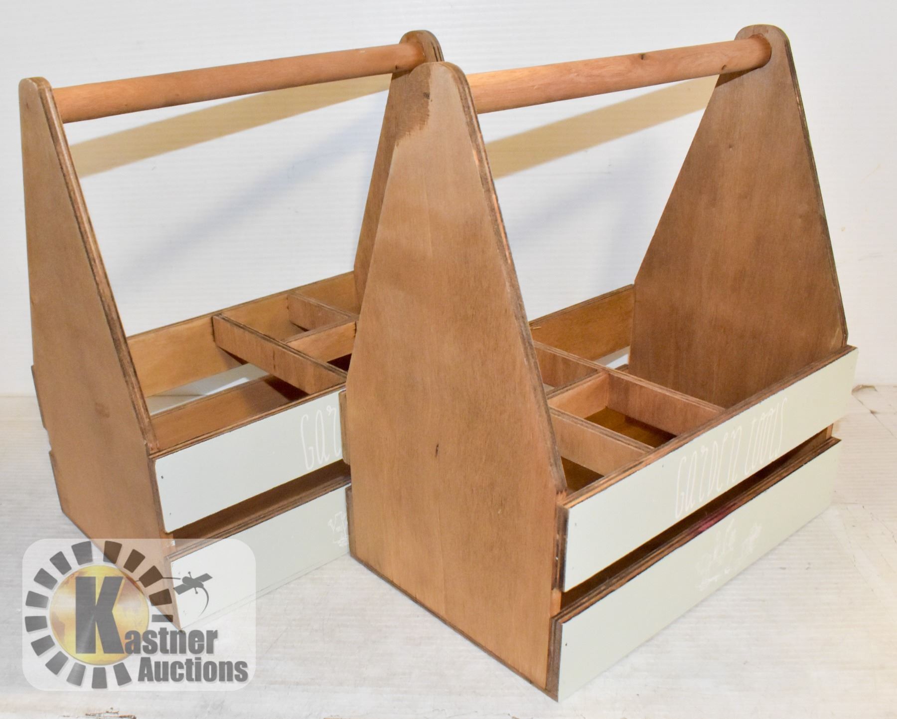 LOT OF 2 NEW WOODEN GARDEN TOOL BOXES