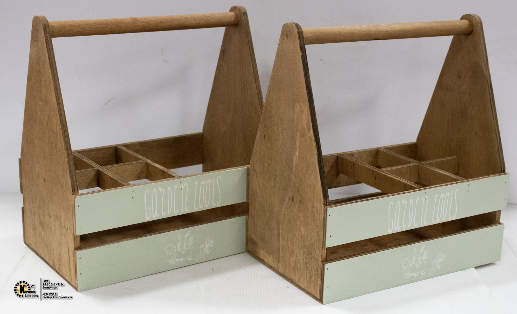 LOT OF 2 NEW WOODEN GARDEN TOOL BOXES