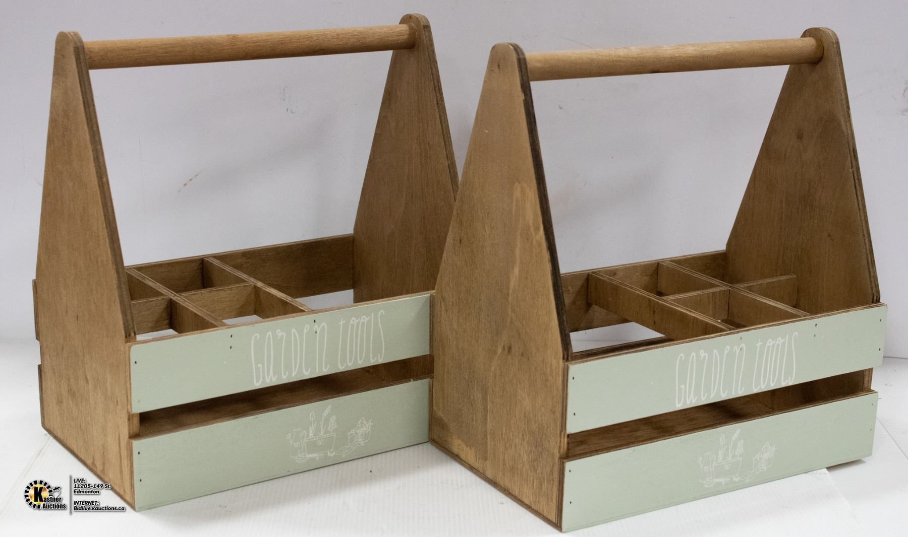 LOT OF 2 NEW WOODEN GARDEN TOOL BOXES