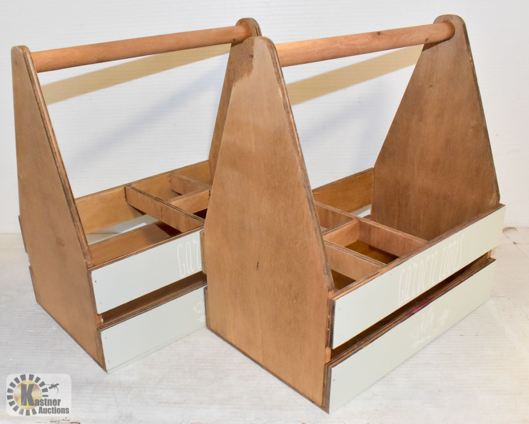 LOT OF 2 NEW WOODEN GARDEN TOOL BOXES