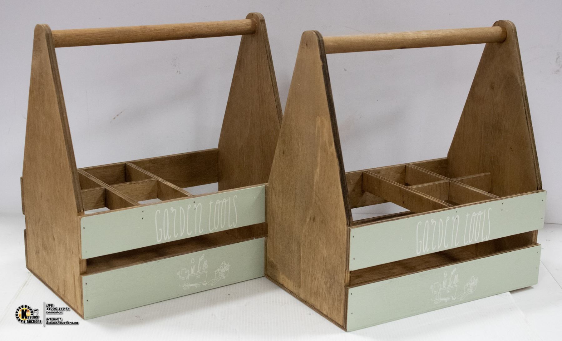 LOT OF 2 NEW WOODEN GARDEN TOOL BOXES