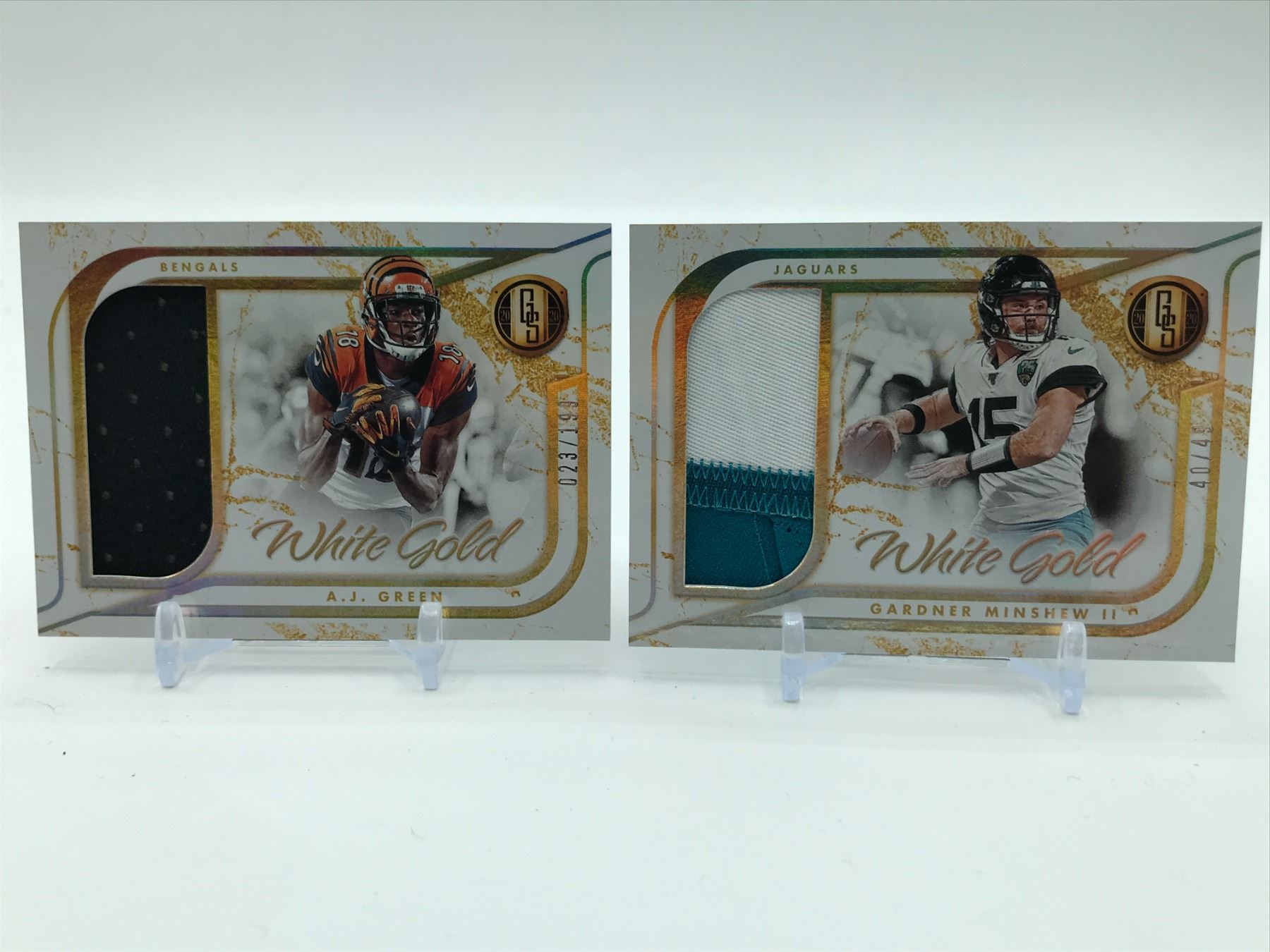 LOT OF 2 NFL WHITE GOLD PATCH TRADING CARDS
