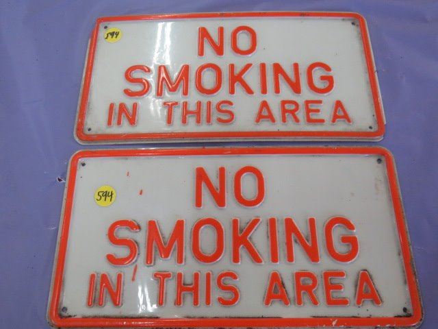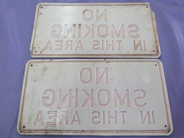 LOT OF 2 NO SMOKING SIGNS (PLASTIC) *6" X 12"* (1 HAS DAMAGE ON EDGE)
