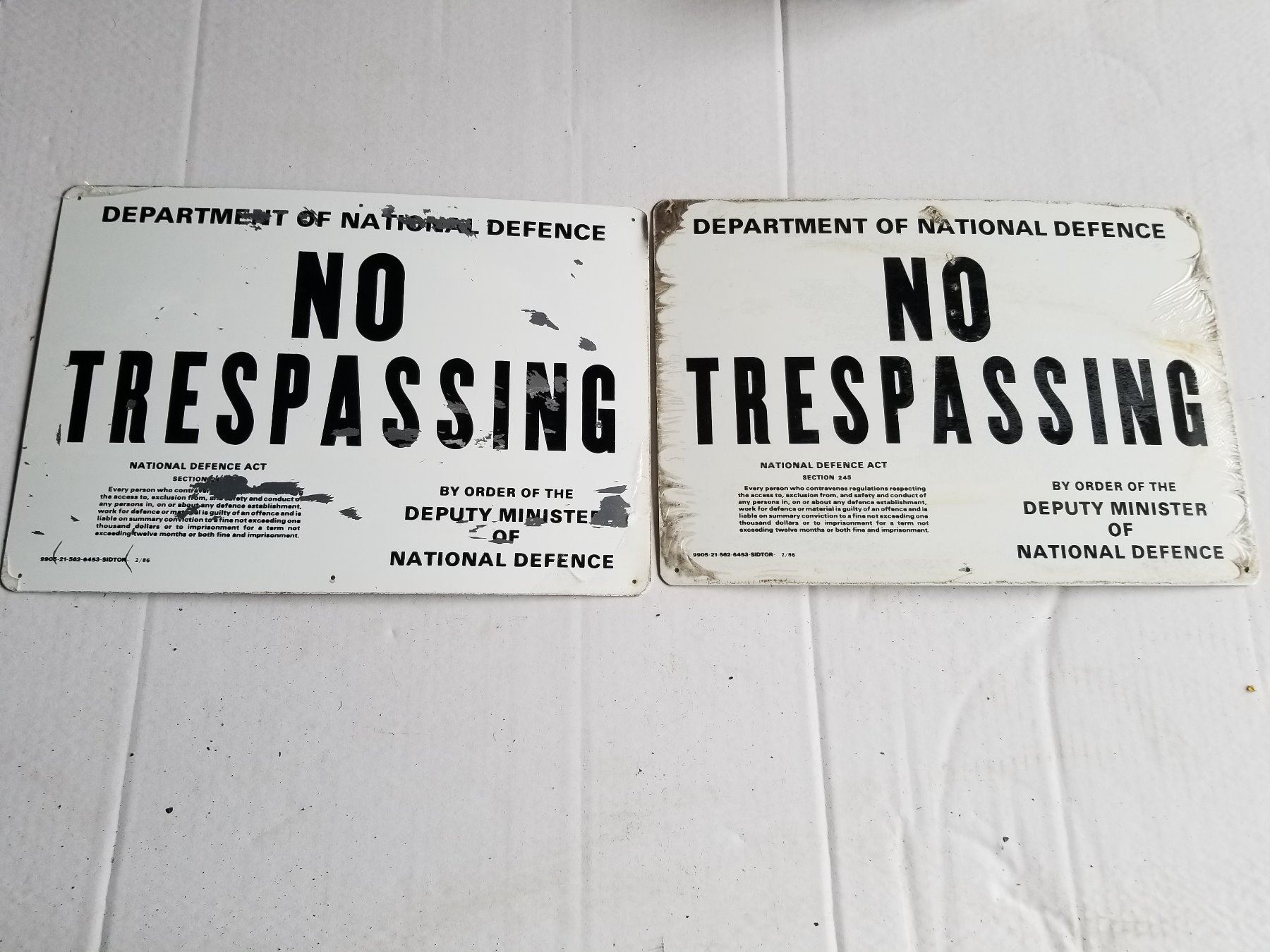 LOT OF 2 'NO TRESPASSING' SIGNS (13" X 9") *NEVER USED*