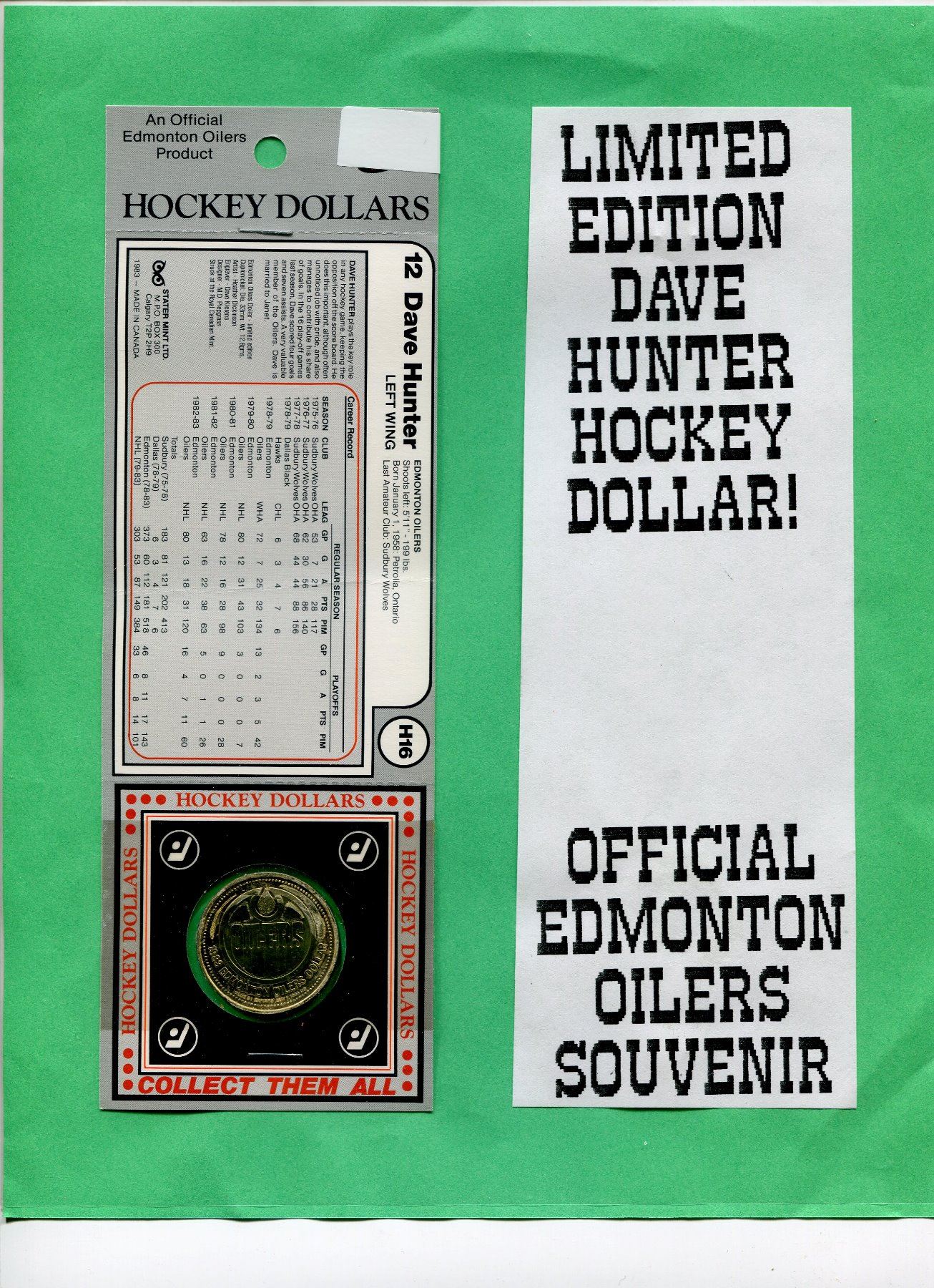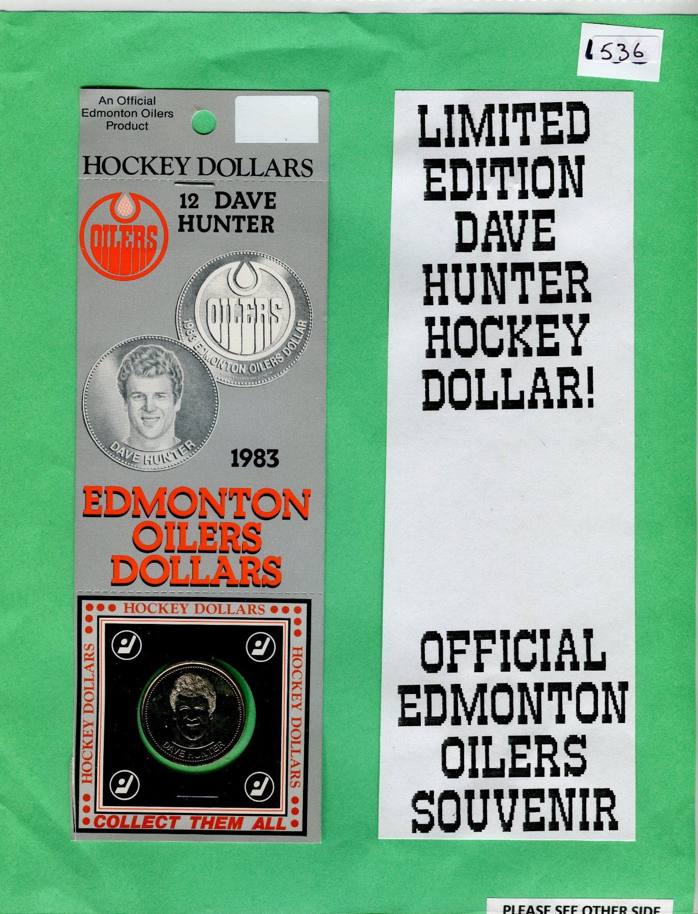 LOT OF 2 OFFICIAL ISSUE EDMONTON OILERS DAVE HUNTER HOCKEY DOLLARS (ORIGINAL PACKAGES)