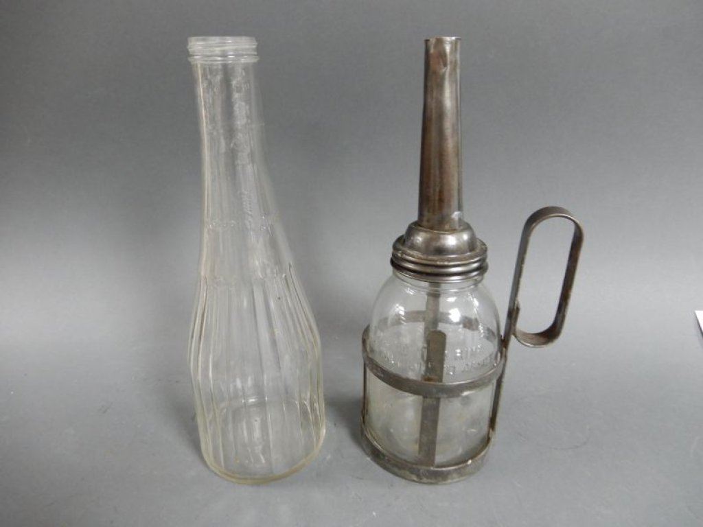 LOT OF 2 OIL BOTTLES SUPERTEST IMP. QT. - NO CAP - GENERIC OIL BOTTLE/STUBER & KUCK SPOUT & CARRIER LOCATION: LOWER RIGHT