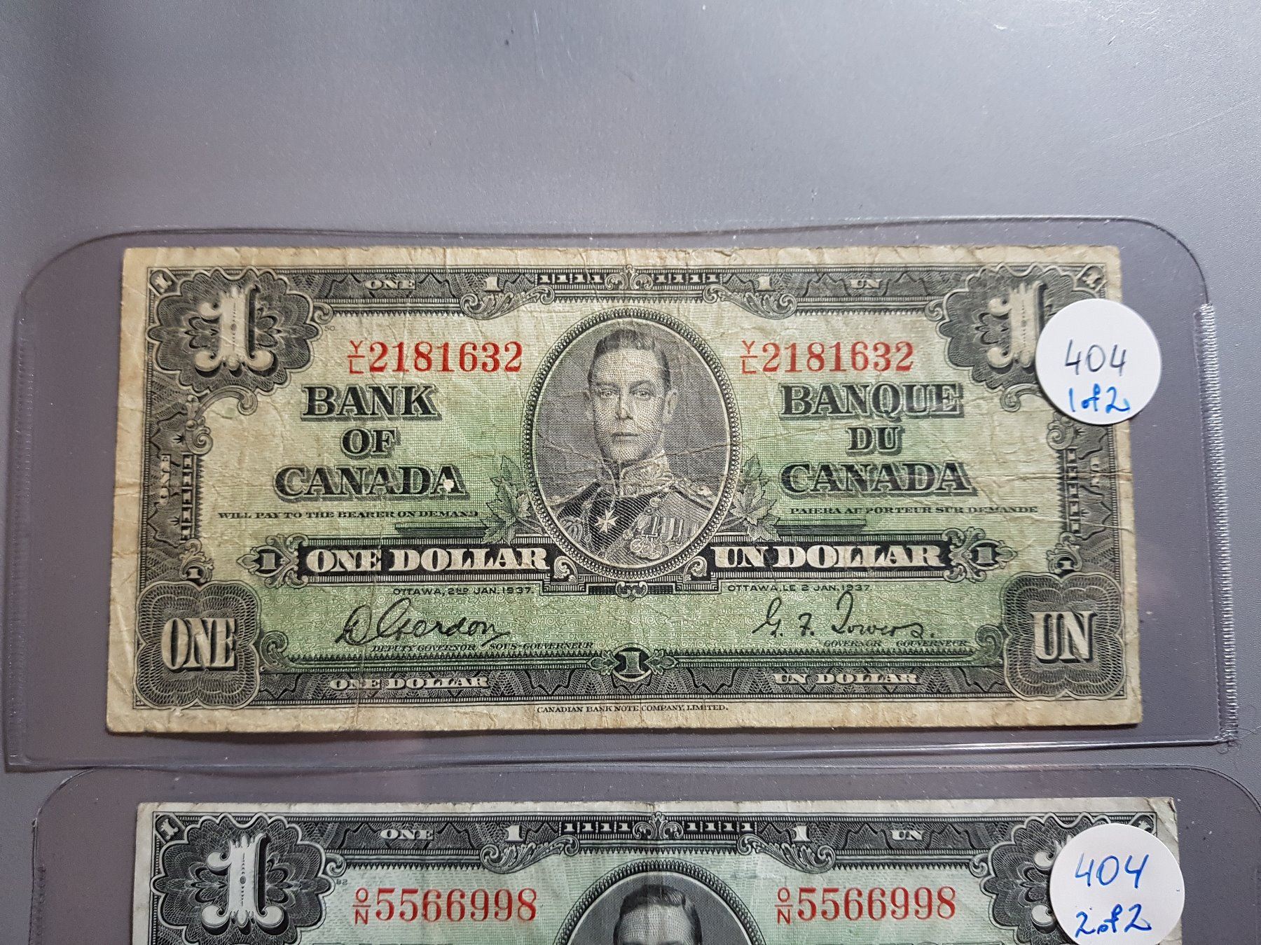 LOT OF 2-ONE DOLLAR BILLS (1937) *COYNE AND GORDON SIGNATURES* (CANADA)