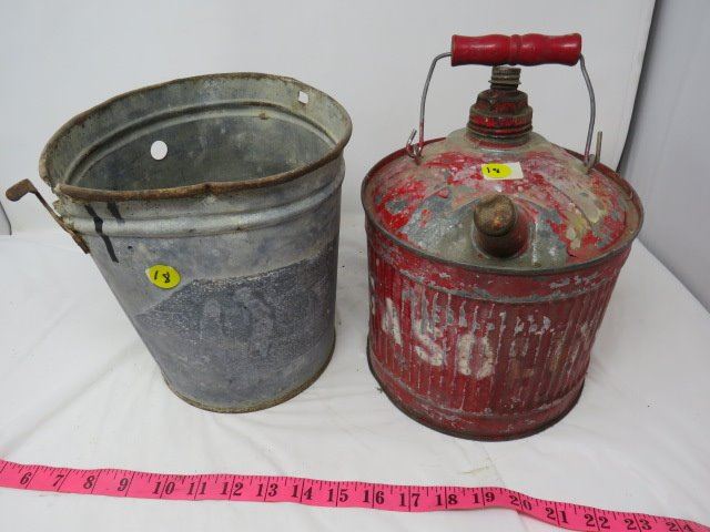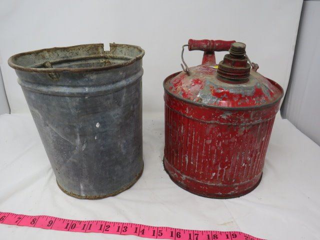 LOT OF 2 (ONE GAL. JERRY CAN, 1 GAL. ICE CREAM PAIL)