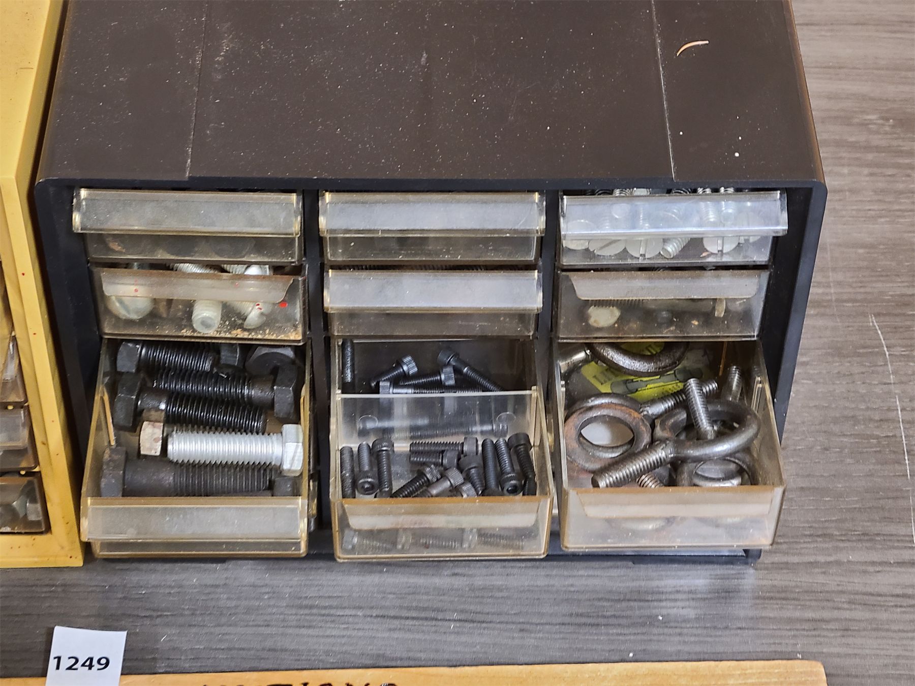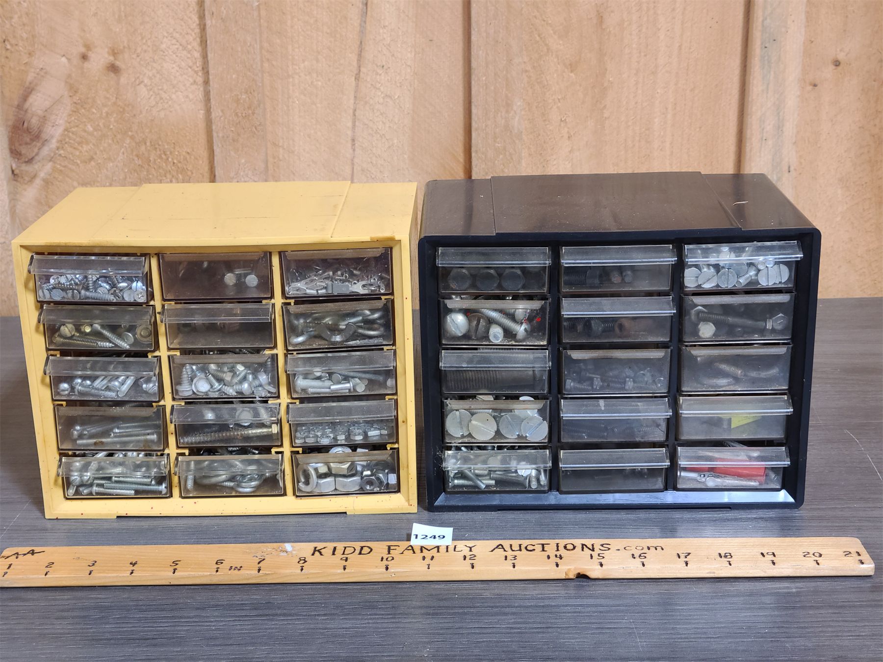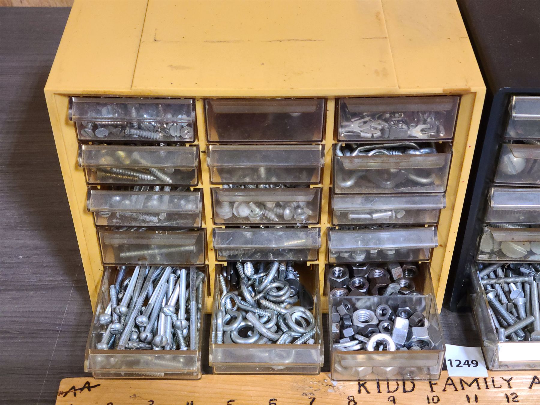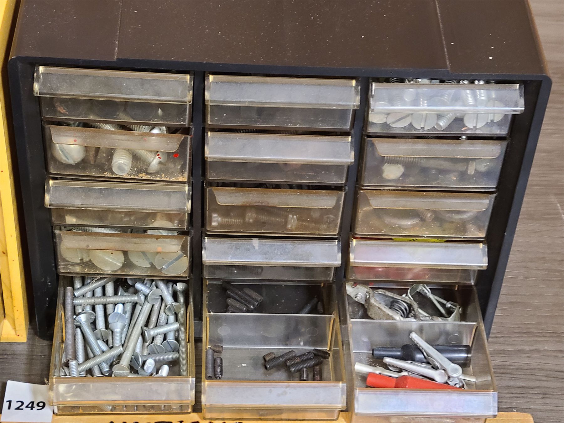 LOT OF 2 - PARTS BINS W/ MISC BOLTS, SCREWS ETC.