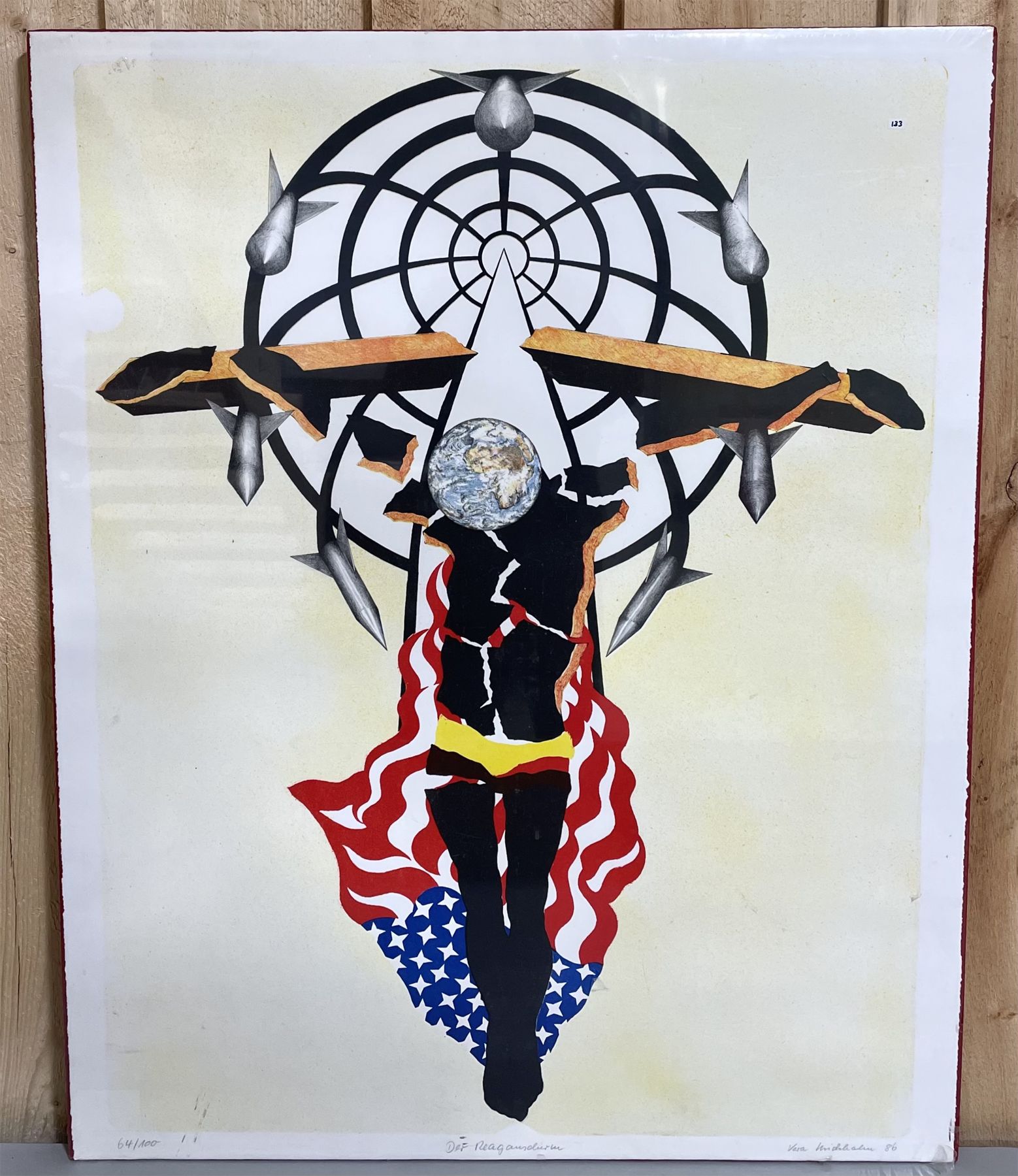 LOT OF 2: PRINT ON WATERCOLOUR PAPER MOUNTED ON FOAM BOARD - 47 X 37 INCHES - #64/100. ALSO INCLUDES SECOND IDENTICLE PRINT UNMOUNTED #63/100